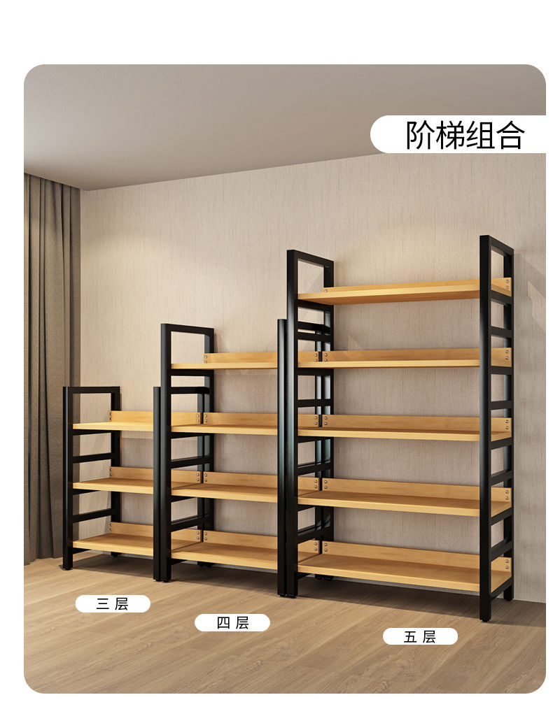 선반 다층 디스플레이 랙 바닥 대 바닥 디스플레이 랙 홈 매일 사용 연구 책장 슈퍼마켓 가정용 강철 목재 스토리지 랙스토어 가기