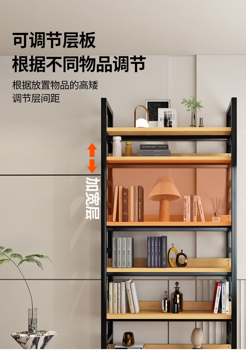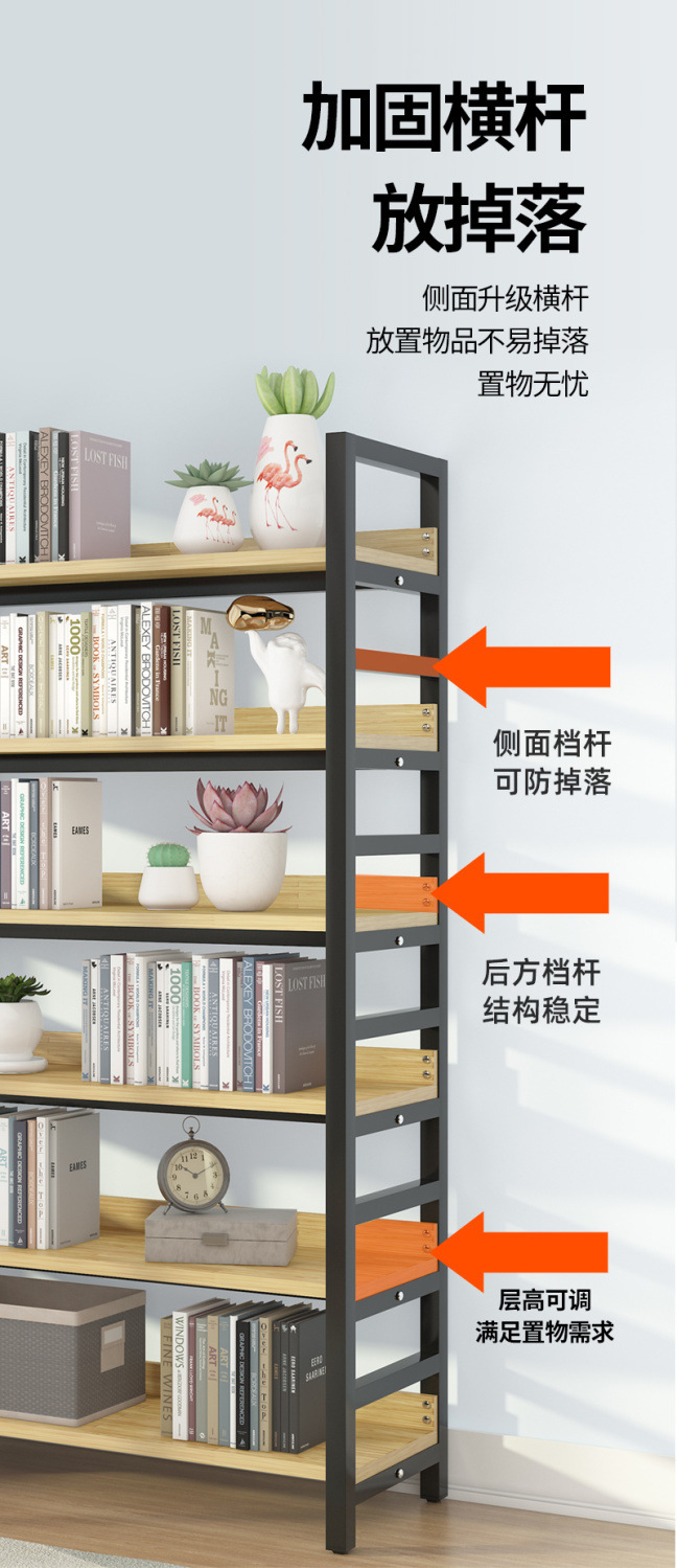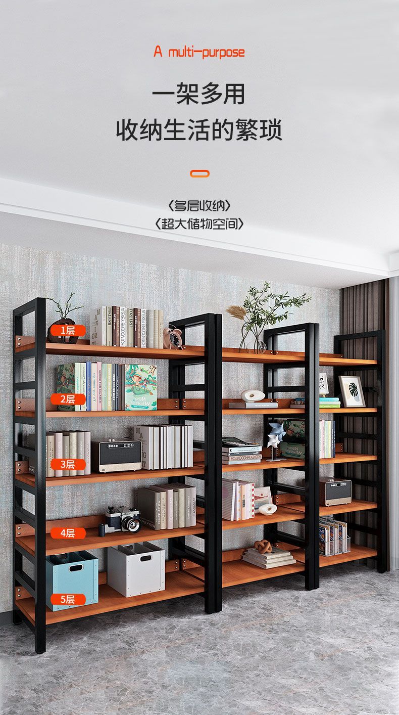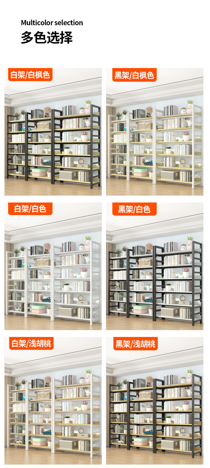 선반 다층 디스플레이 랙 바닥 대 바닥 디스플레이 랙 홈 매일 사용 연구 책장 슈퍼마켓 가정용 강철 목재 스토리지 랙