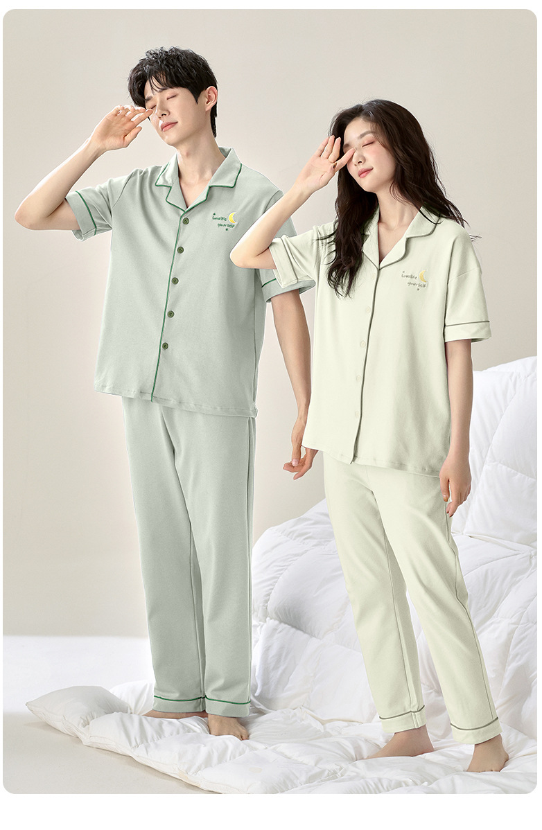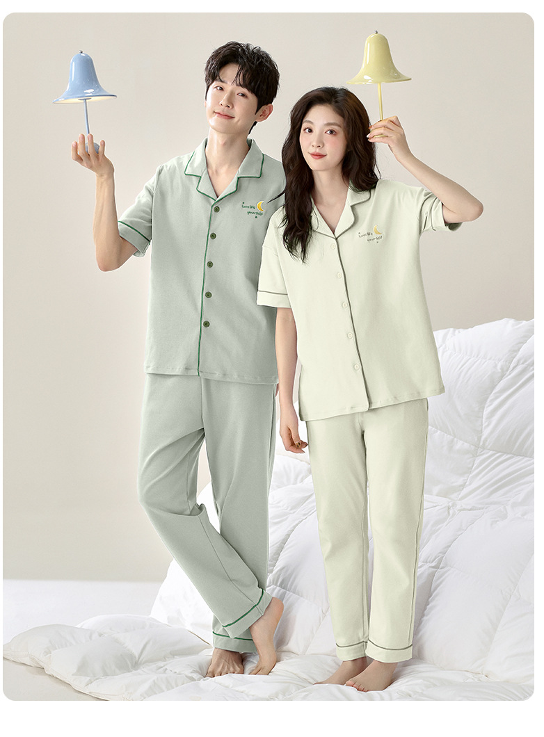 2025 새로운 면 홈 의류 세트 캐주얼 카디건 겉옷 잠옷 커플 봄과 여름 면 짧은 소매 바지