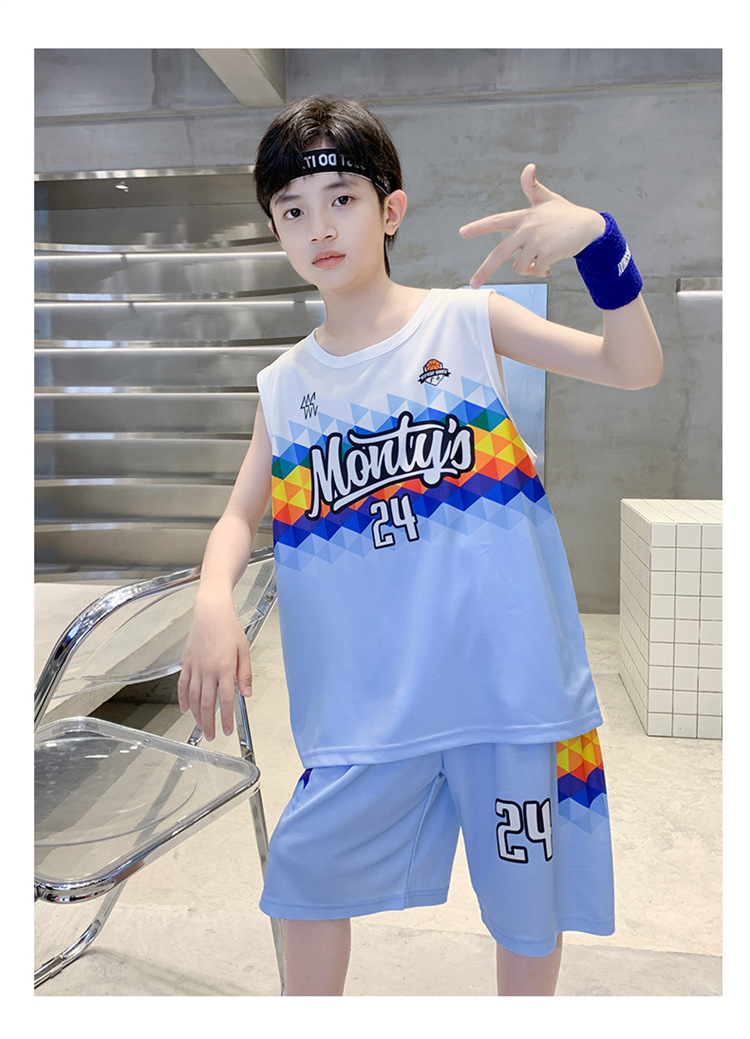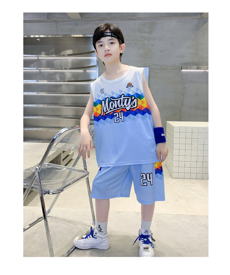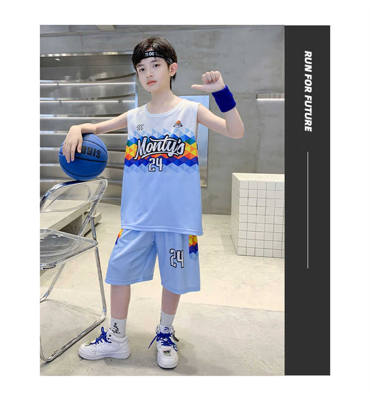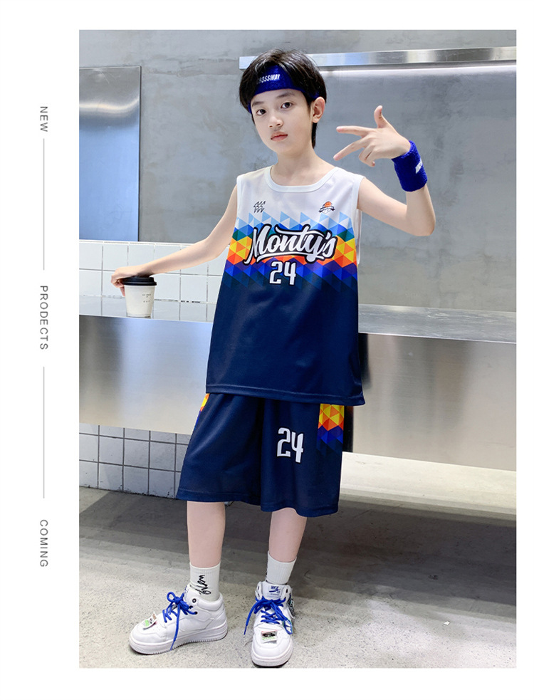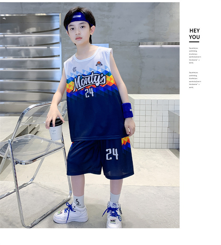 소년 농구 세트 세트 2025 새로운 여름 스포츠 민소매 저지 소년 빠른 마른 옷 훈련 옷 캐주얼 패션스토어 가기