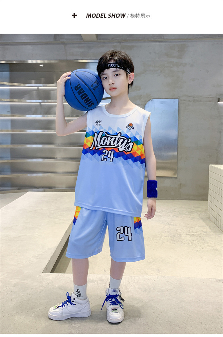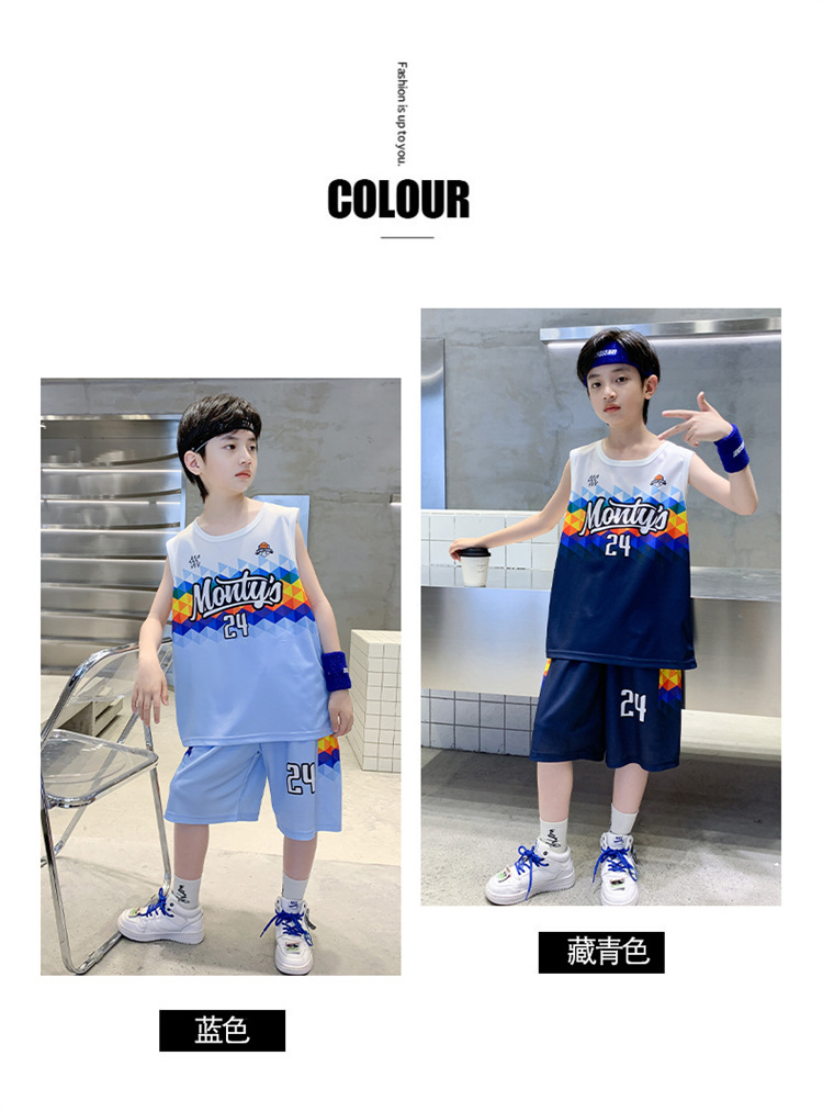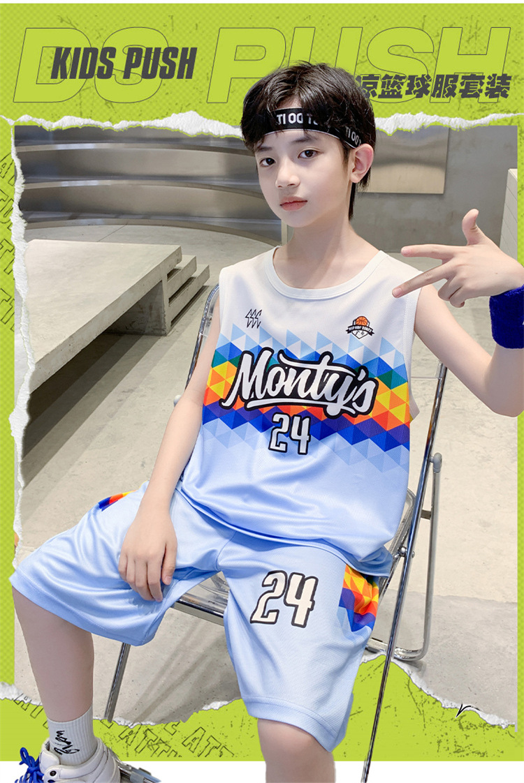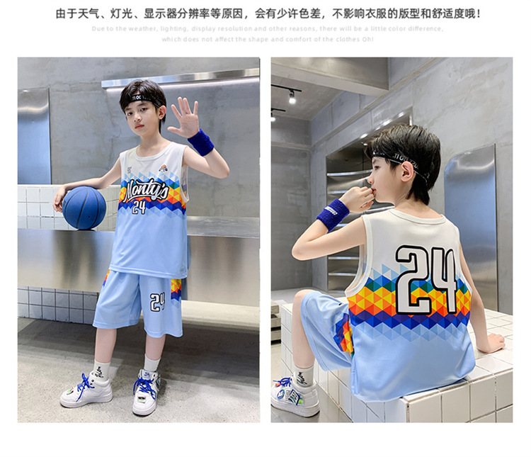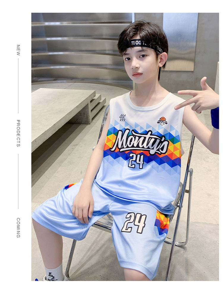 소년 농구 세트 세트 2025 새로운 여름 스포츠 민소매 저지 소년 빠른 마른 옷 훈련 옷 캐주얼 패션스토어 가기