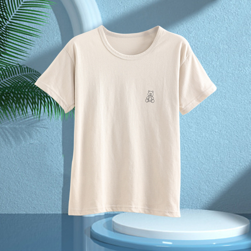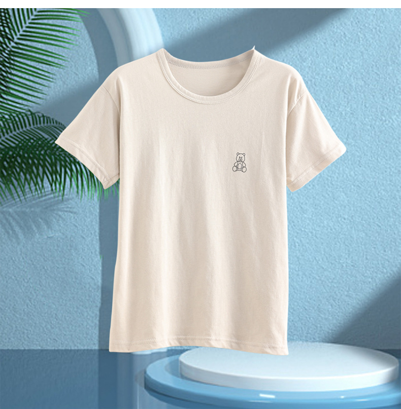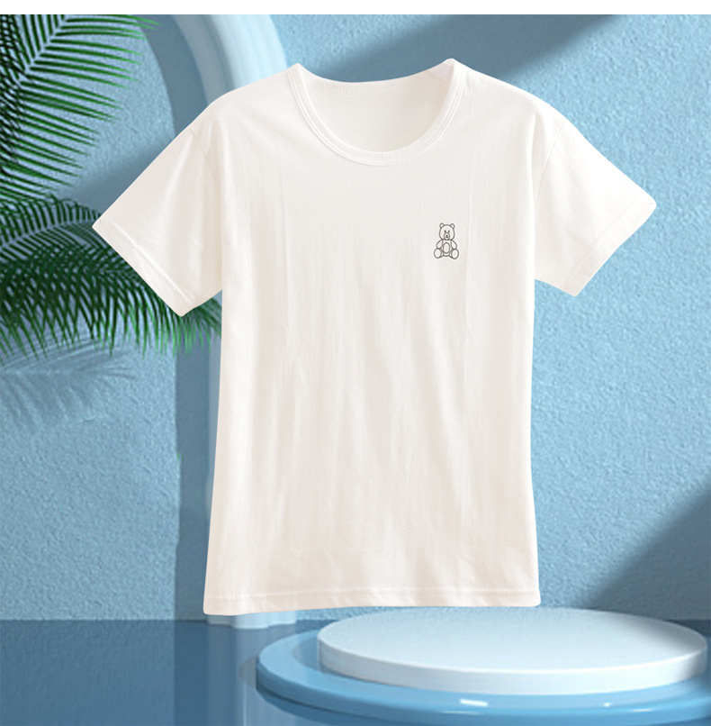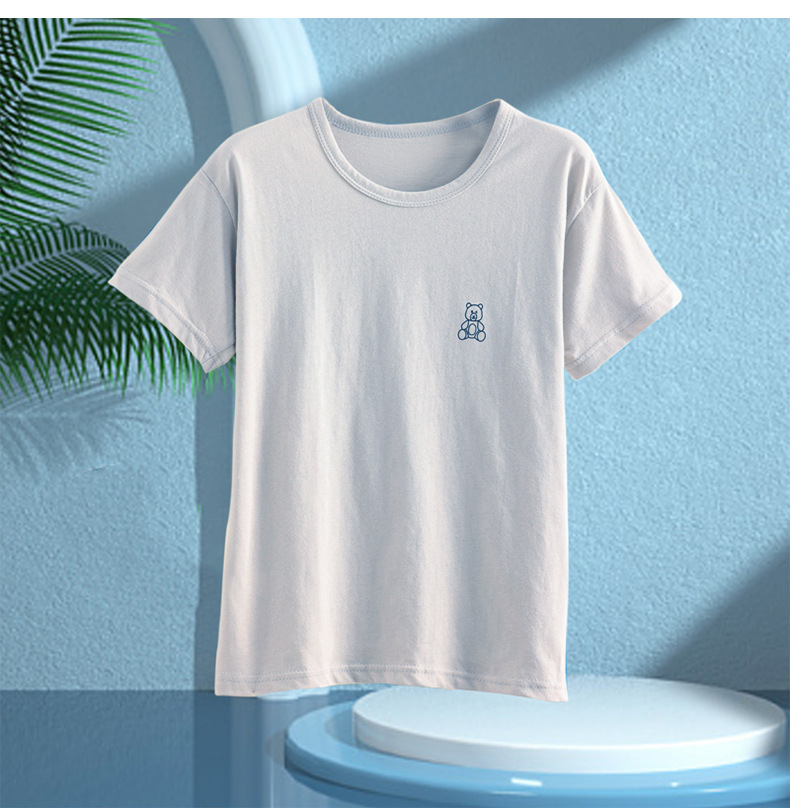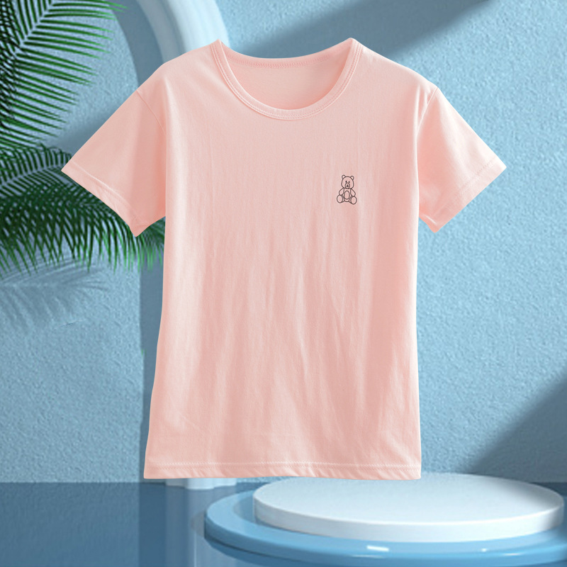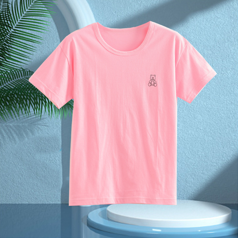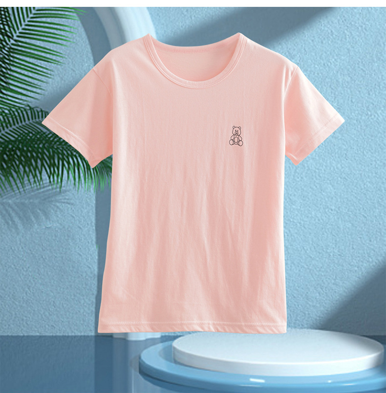 어린이 티셔츠 면화 수분 흡수 통기성 여름 스포츠 소년 큰 어린이와 어린 소녀를위한 최고의 여자 반팔 홈 옷스토어 가기
