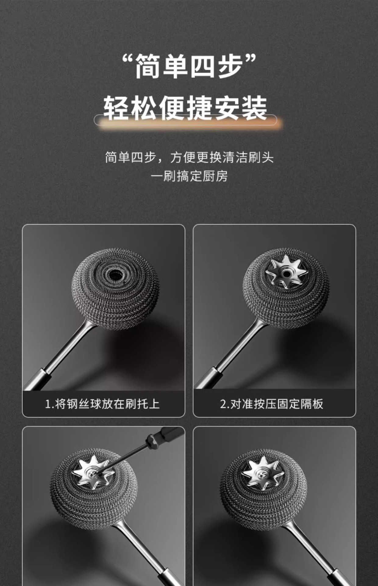 • 스테인레스 스틸 냄비 브러시(교체용 분해)