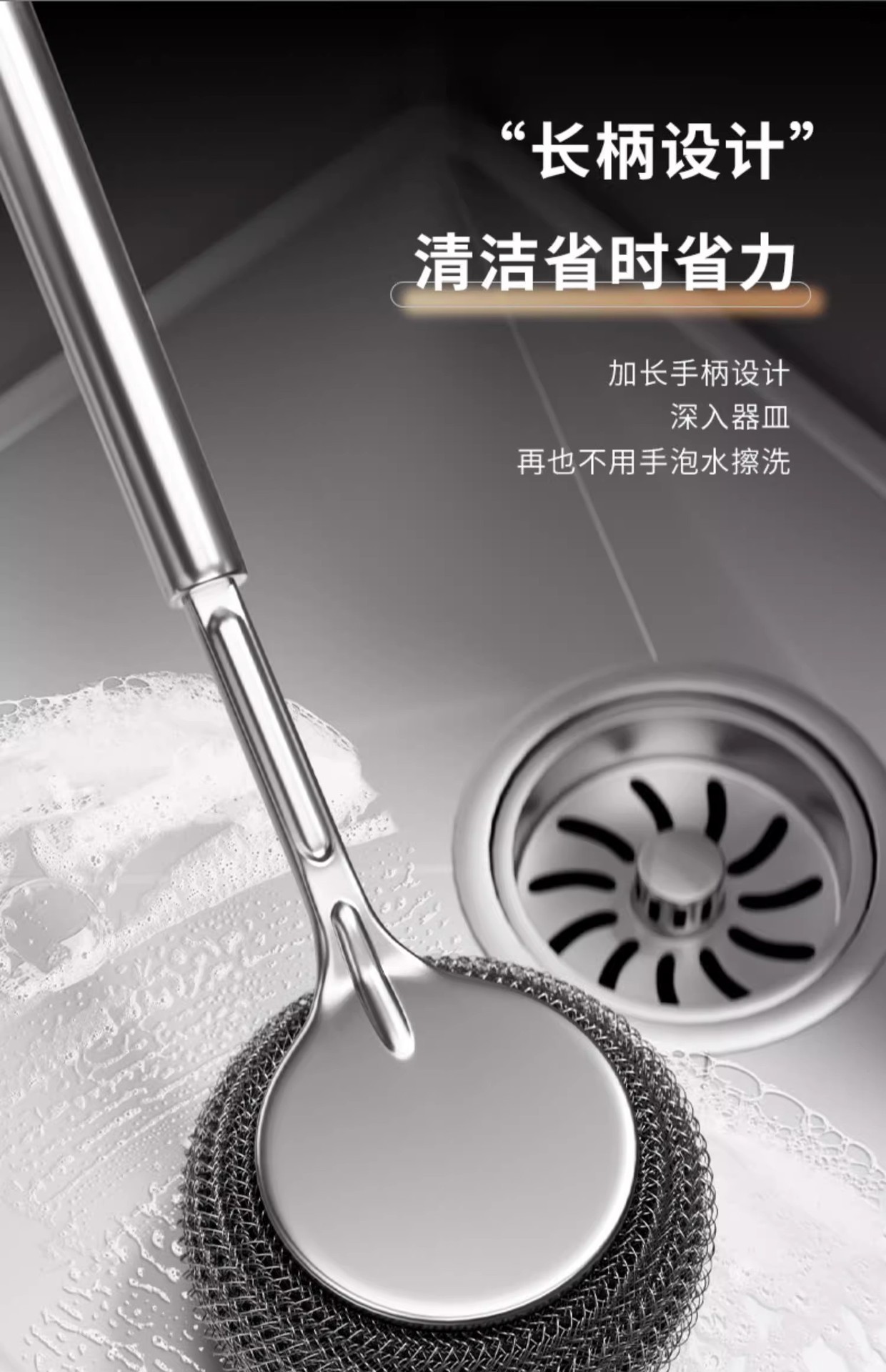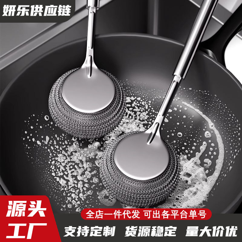 새로운 스테인레스 스틸 냄비 브러시 주방 특수 세척 냄비 스틸 와이어 볼 브러시 긴 핸들 접시 세척 브러시 브러시 브러시 냄비