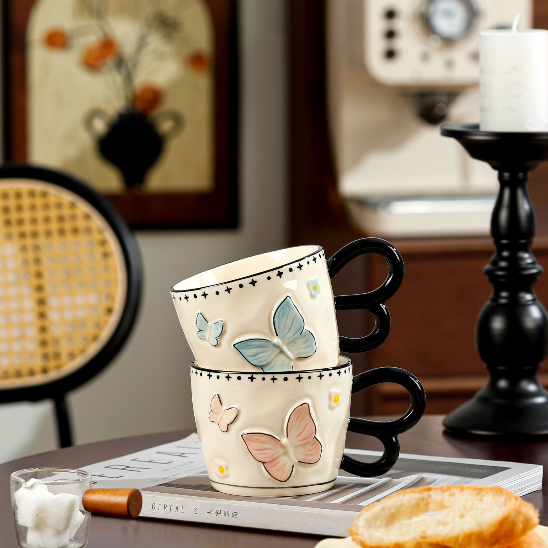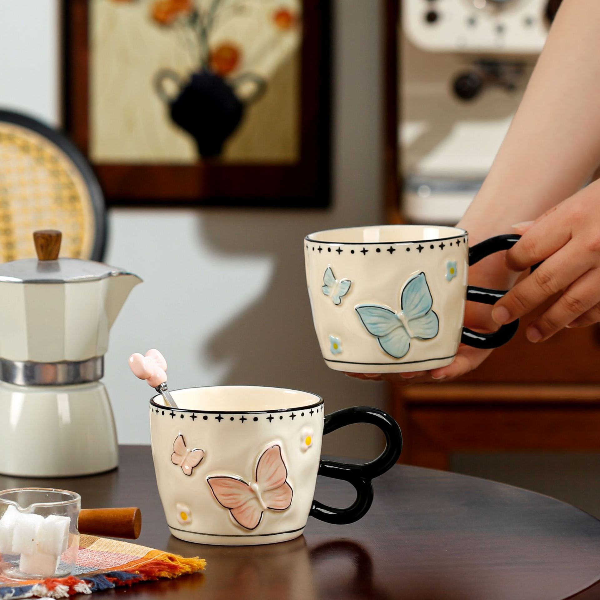 여성을위한 숟가락 생일 선물로 귀여운 고가의 활 머그잔 속유약 세라믹 컵 가정용 음주 컵스토어 가기