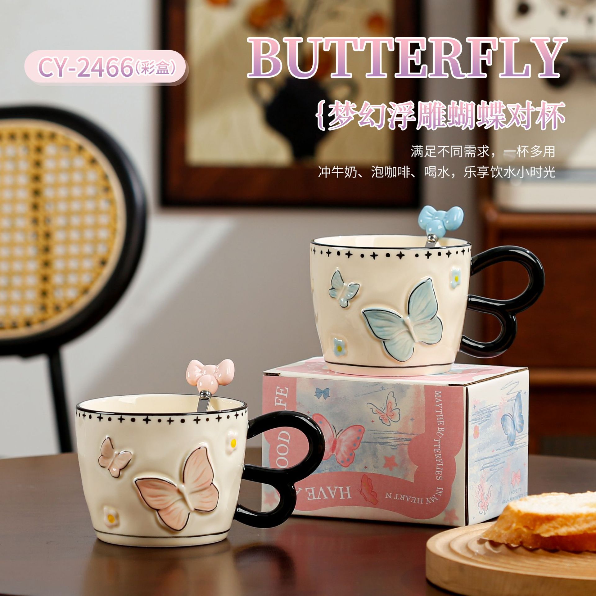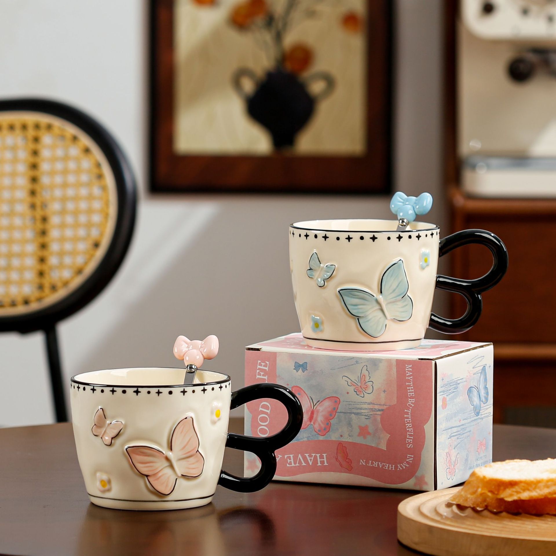 • 나비 머그 + 스푼 - 핑크 (절묘한 색상 상자)