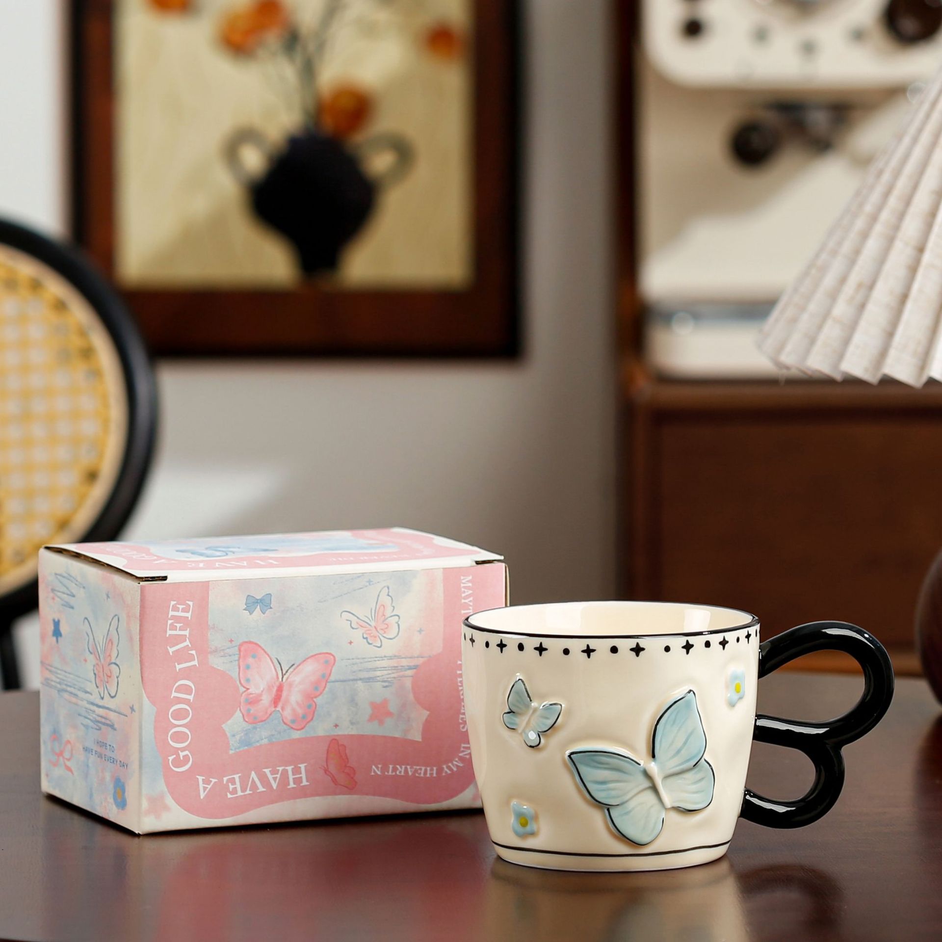 • 나비 머그 - 핑크(절묘한 색상 상자)