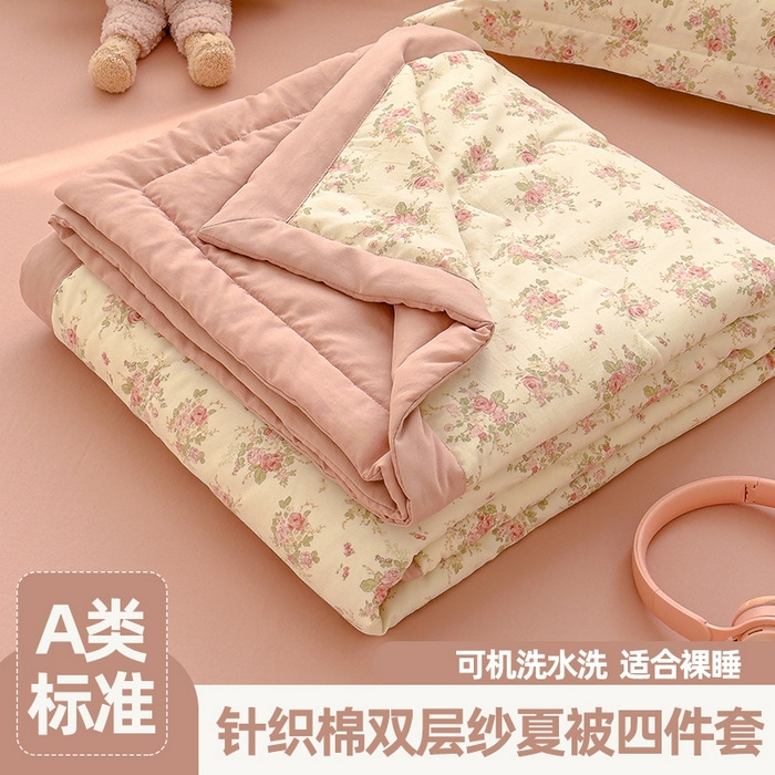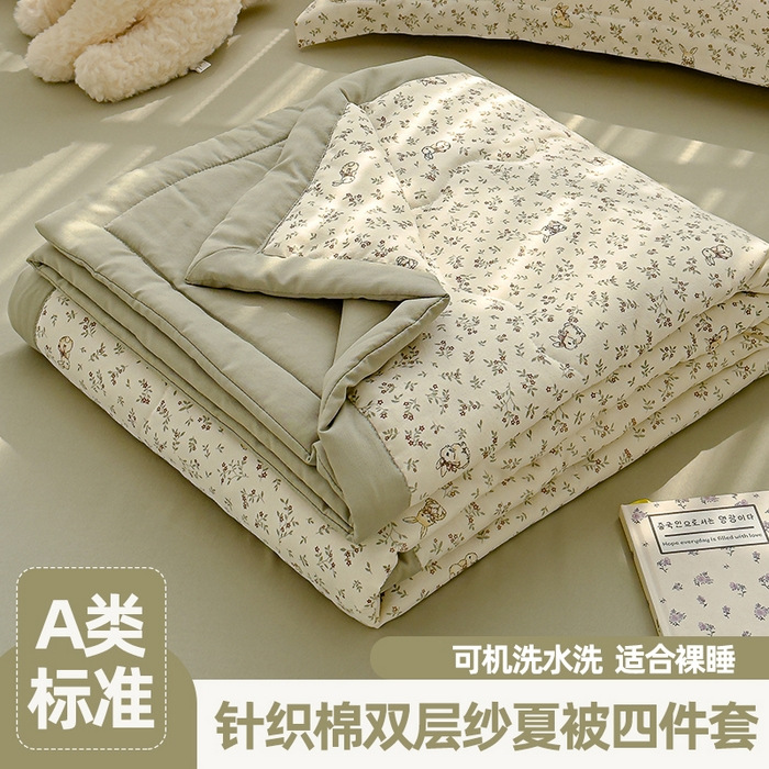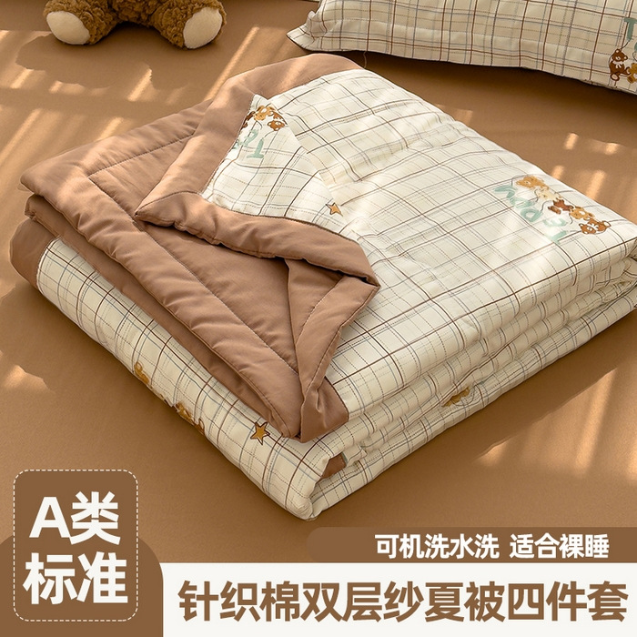 아마존 국경 간 클래스 A 니트 코튼 더블 레이어 원사 여름 퀼트 어린이 에어컨 퀼트 학생 기숙사 여름 쿨 퀼트 4 피스 세트스토어 가기