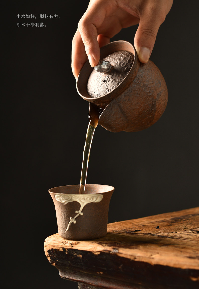 석기 핸드 헬드 팟 싱글 고급 올드 록 머드 주전자 안티 스케일 티 보울 가정용 쿵푸 티 세트 커버 보울 티 컵