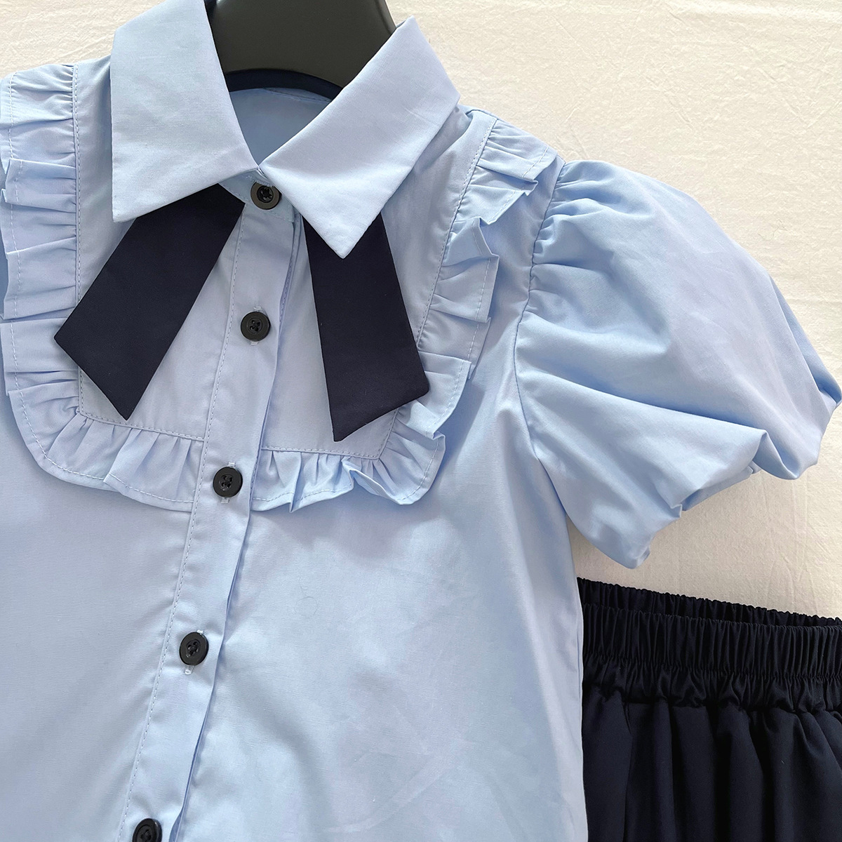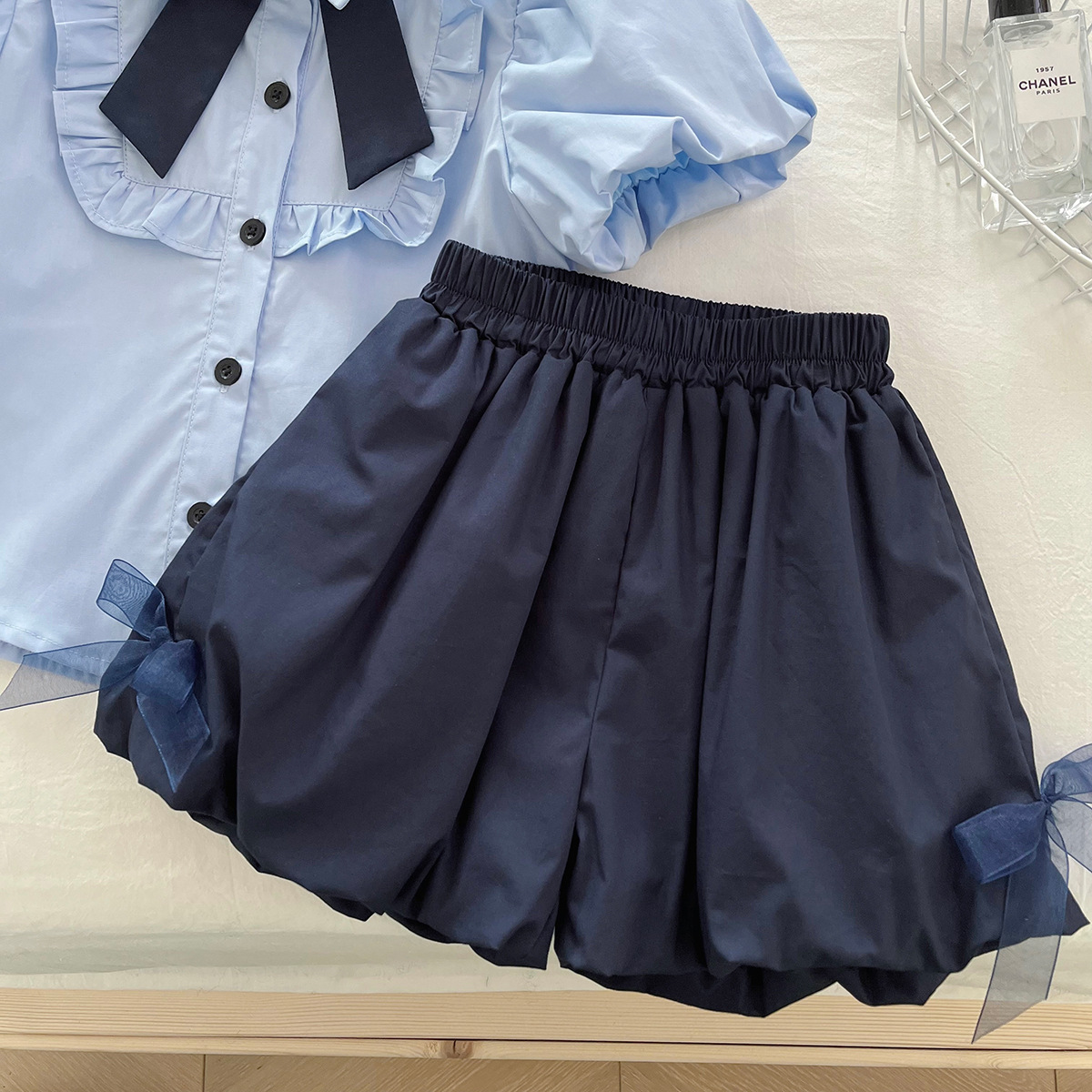 여자 세트 2025 여름 새 한국식 반팔 셔츠 활 버드 반바지 투피스 세트 국경 머리스토어 가기