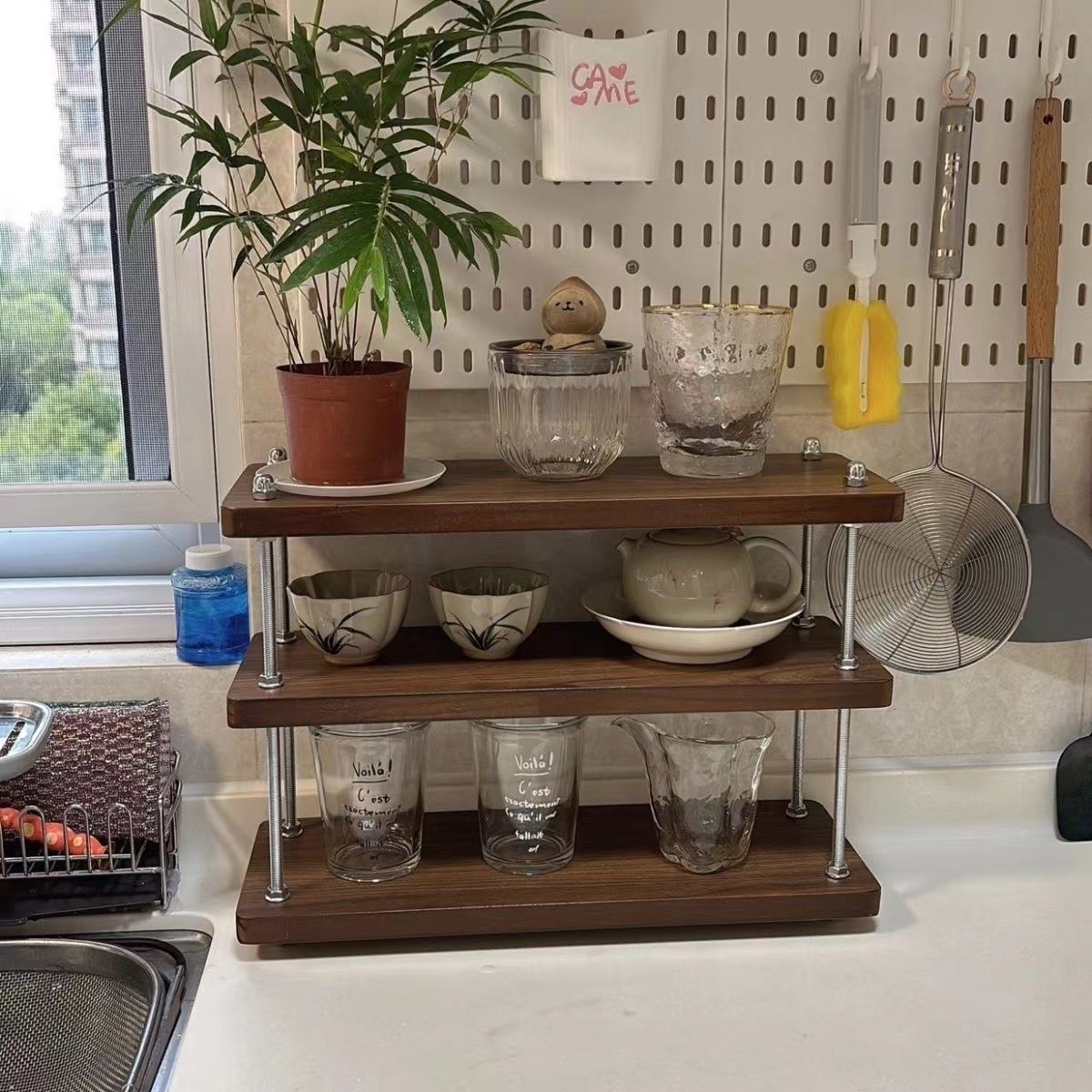 스토리지 랙 골동품 선반 주방 선반 사무실 책상 레이어드 랙 스테이션 데스크탑 스토리지 작은 책장 티 컵 랙