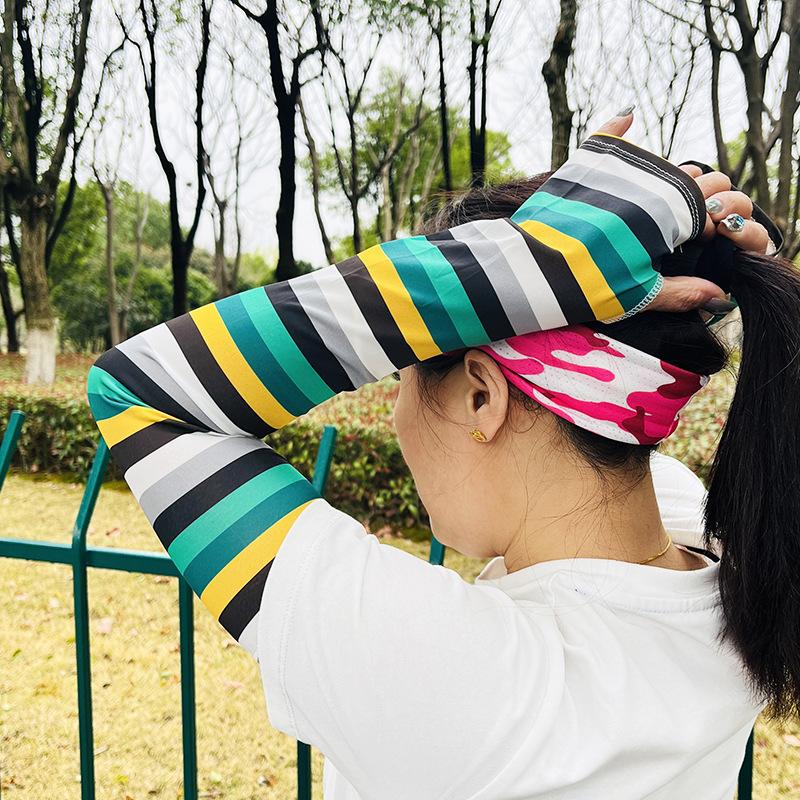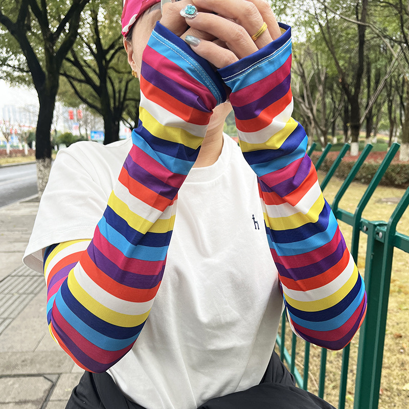 무지개 선 스크린 슬리브 여성의 색상 매칭 스트라이프 여름 느슨한 아이스 슬리브 라이드 햇빛 자외선 차단 팔 슬리브