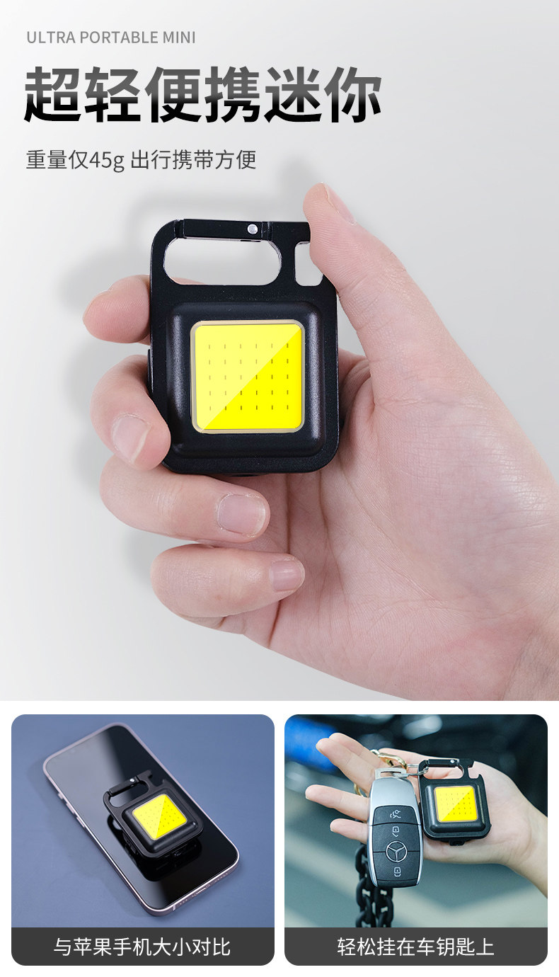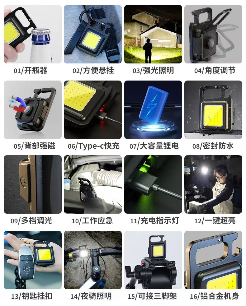 열쇠고리 라이트 손전등 강한 빛 충전식 소형 휴대용 다기능 작업용 LED 야외 라이트 충전식