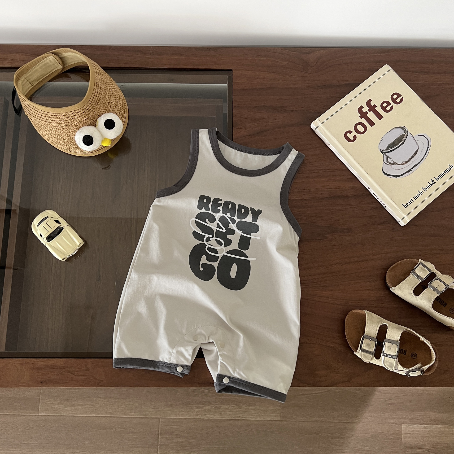 남자 아기 민소매 조끼 편지 쿨 하 옷 신생아 등반 옷 아기의 여름 얇은 한국 스타일 점프 수트