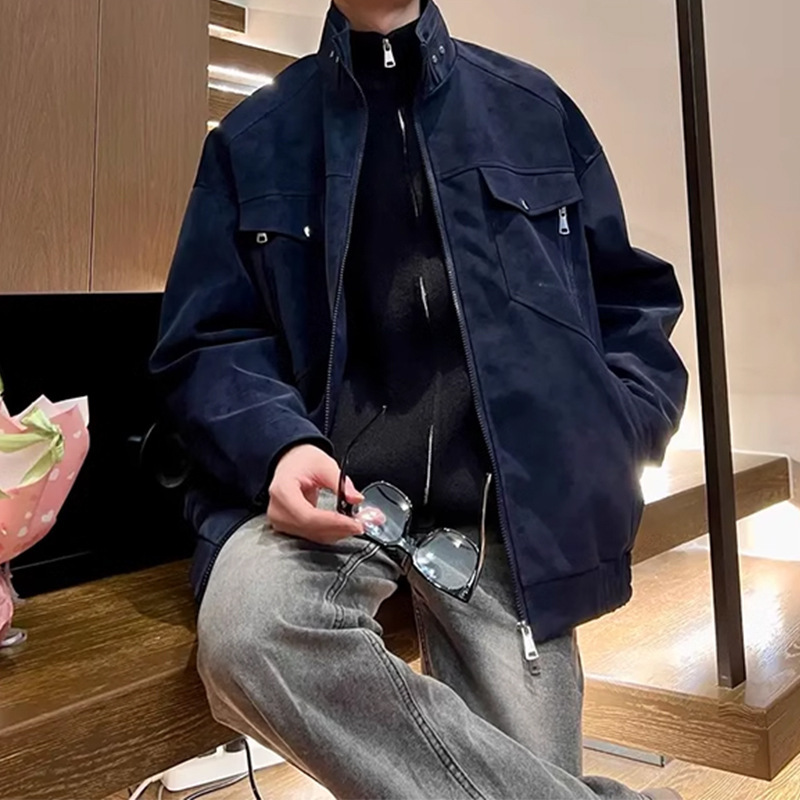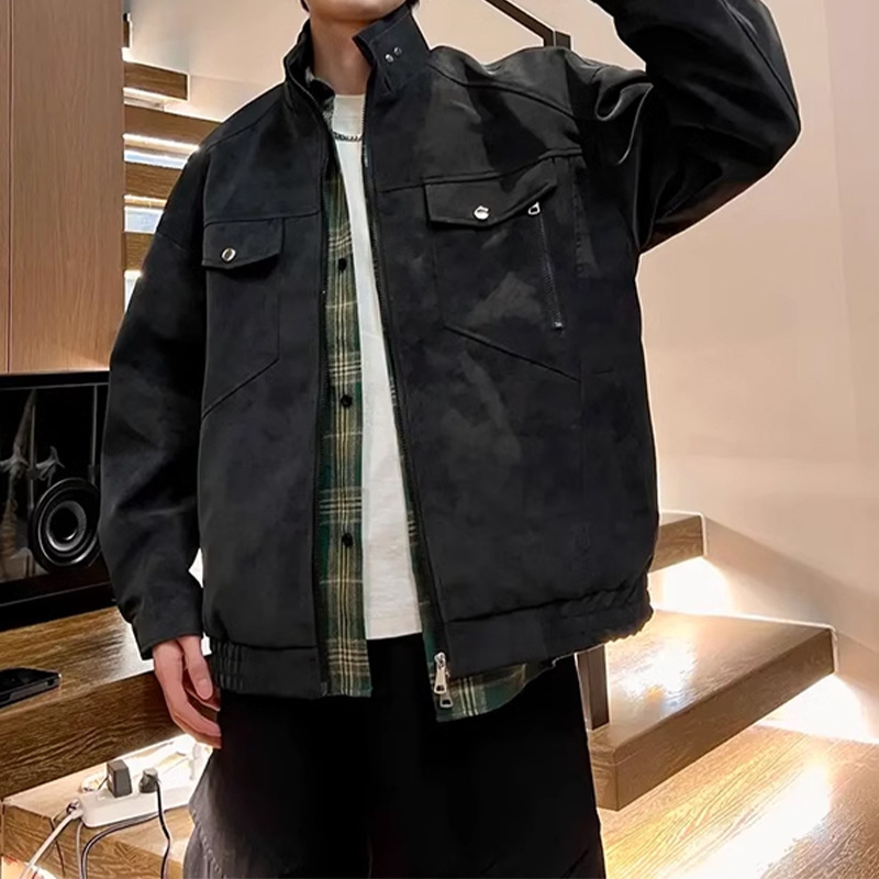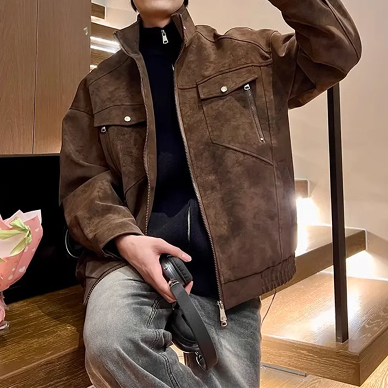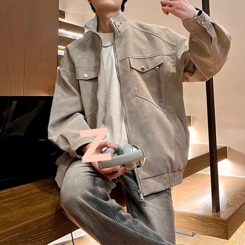 2024 새로운 짧은 코트 남자의 봄과 가을 미국 복고풍 작업 재킷 오토바이 야구 세트 도매스토어 가기