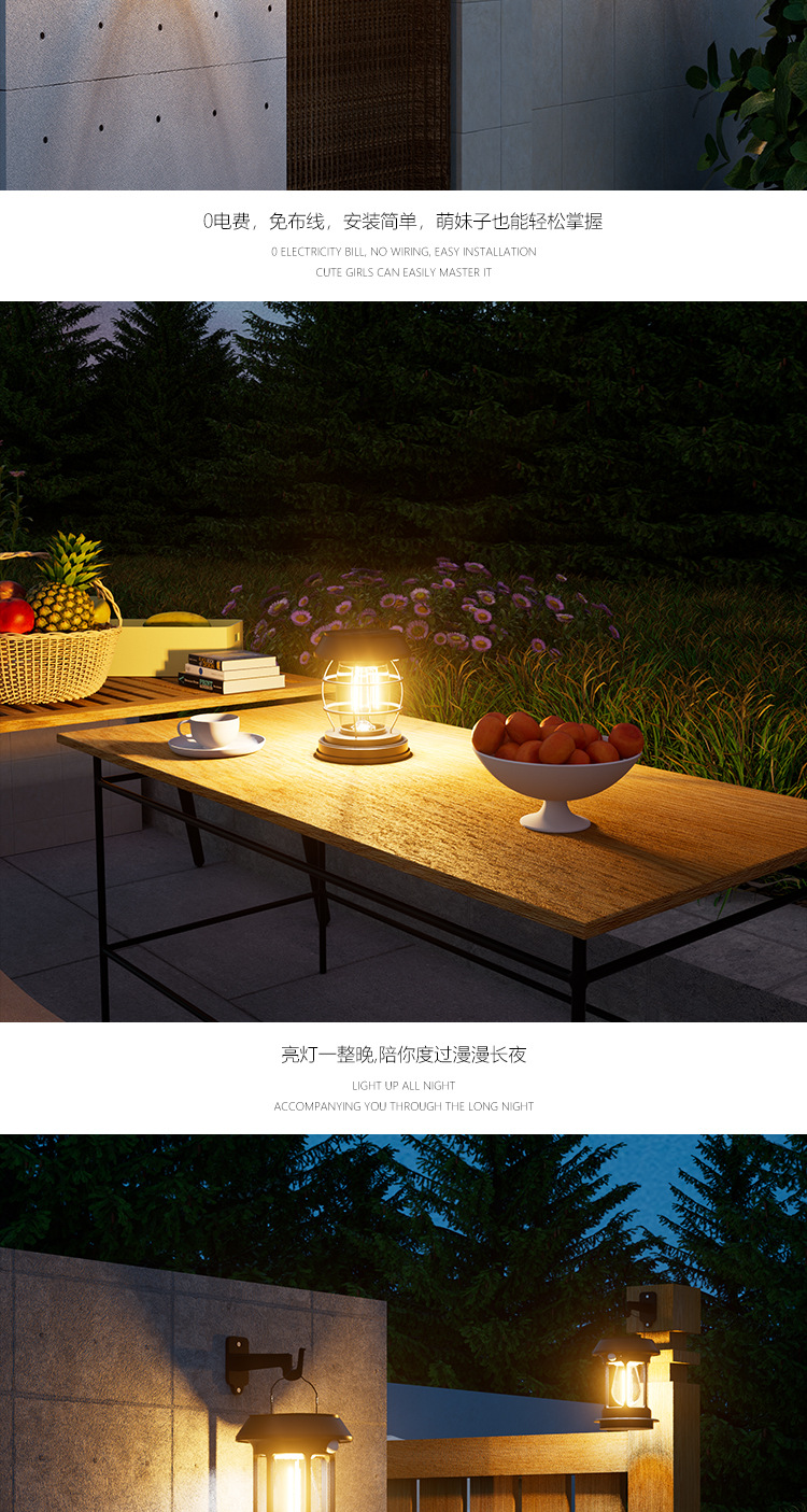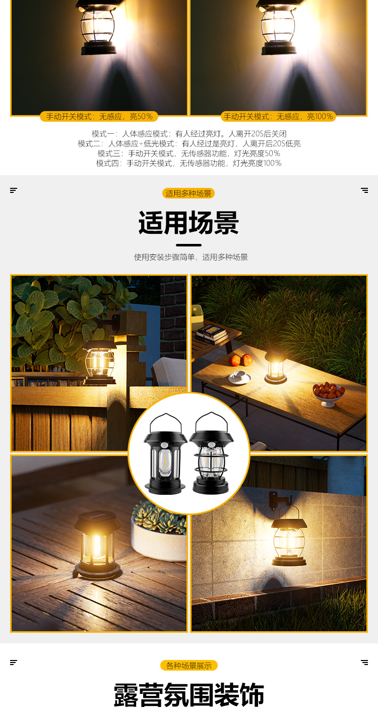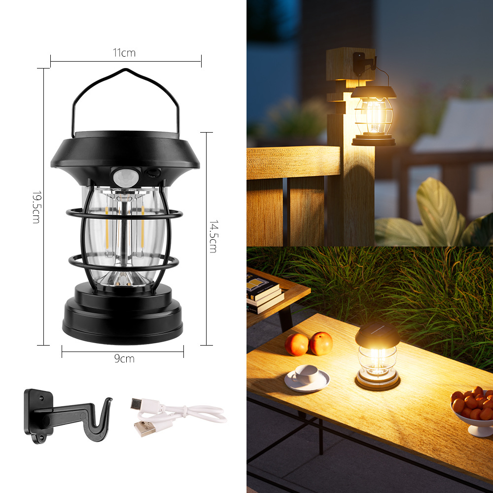 태양 인체 유도 램프 캠핑 텐트 야외 슈퍼 긴 내구성 캠핑 분위기 조명 휴대용 말 램프