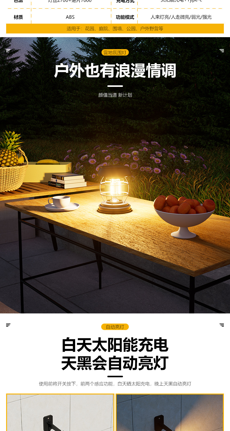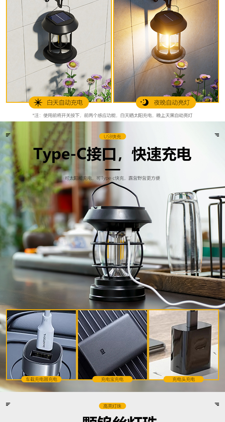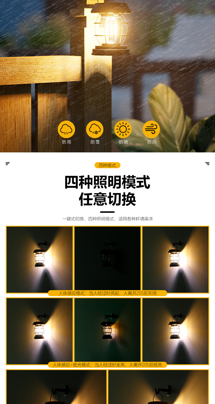 태양 인체 유도 램프 캠핑 텐트 야외 슈퍼 긴 내구성 캠핑 분위기 조명 휴대용 말 램프