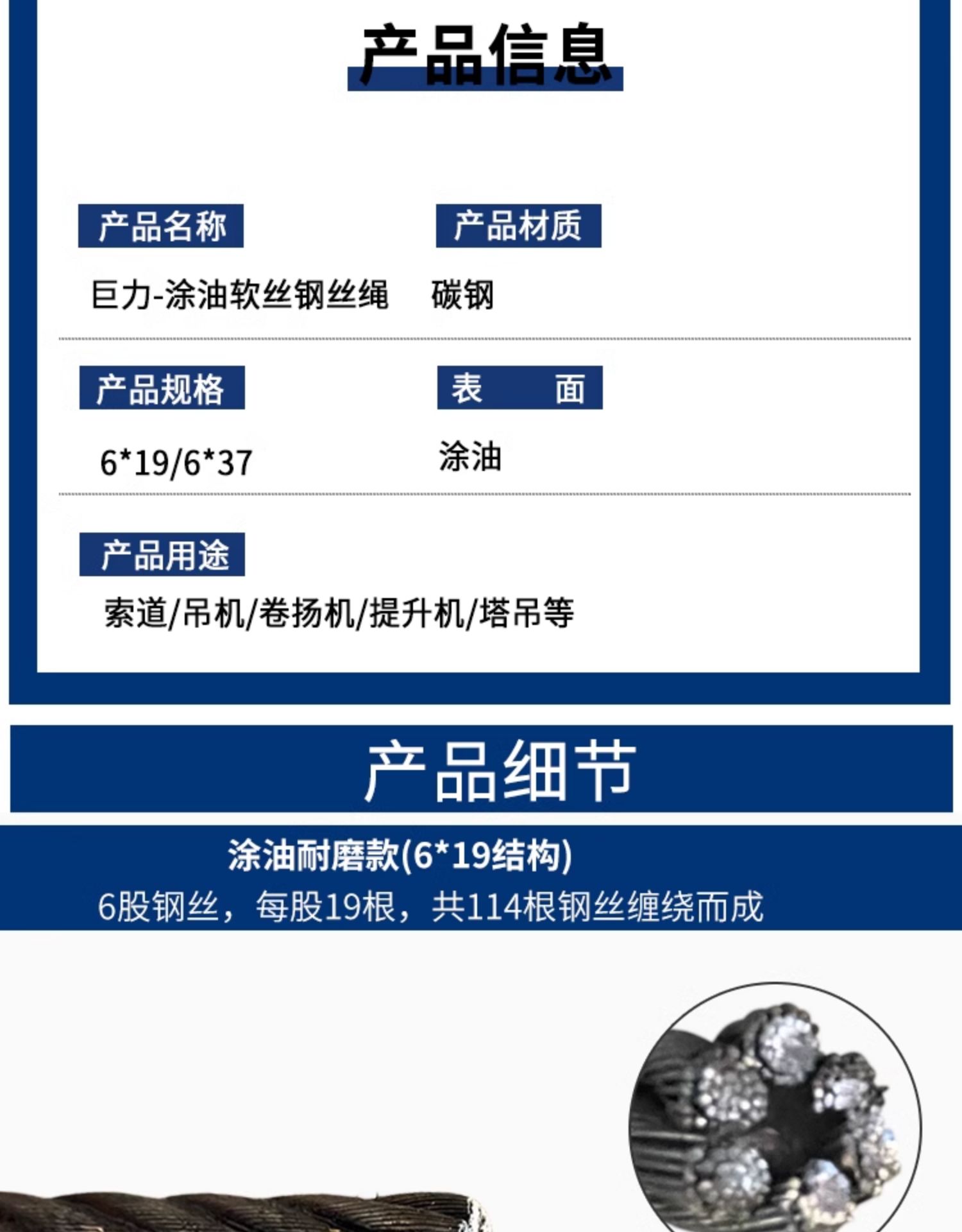 오일 기반 호이 스팅 로프 와이어 로프 6 가닥 대마 코어 12141618m 국가 표준 블랙 크레인 크레인 거대한 힘 부드러운 강철 로프스토어 가기