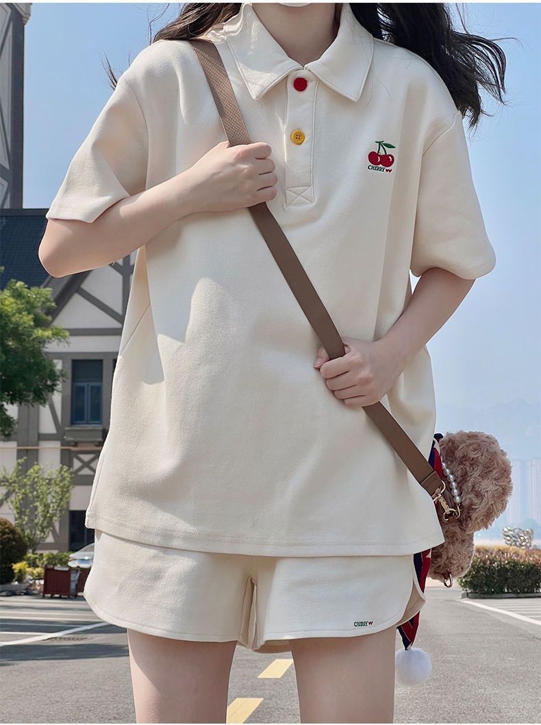 학생 소녀 폴로 셔츠 운동복 세트 여성 여름 대학 스타일 캐주얼 느슨한 반팔 반바지 투피스 세트스토어 가기