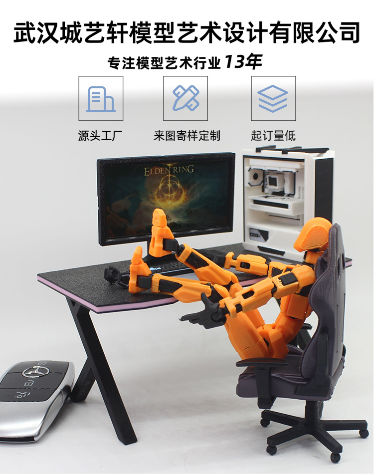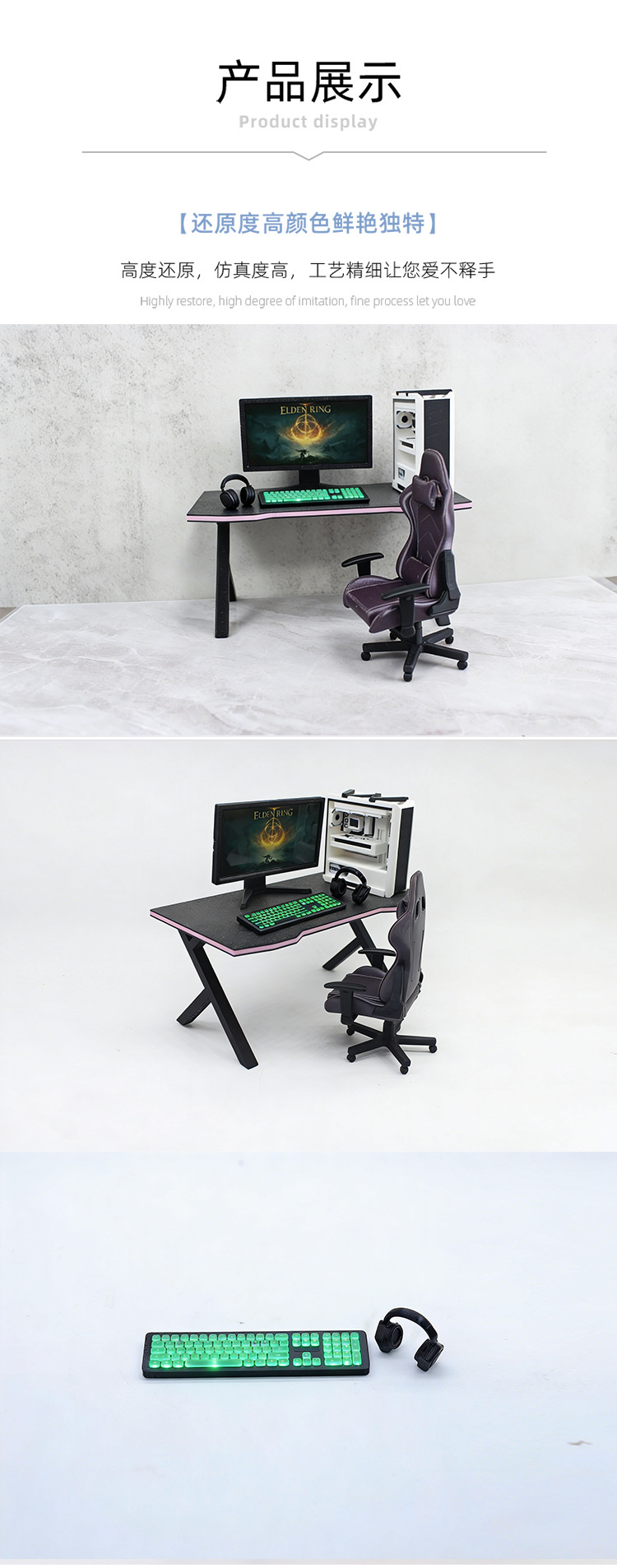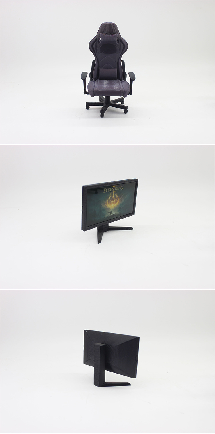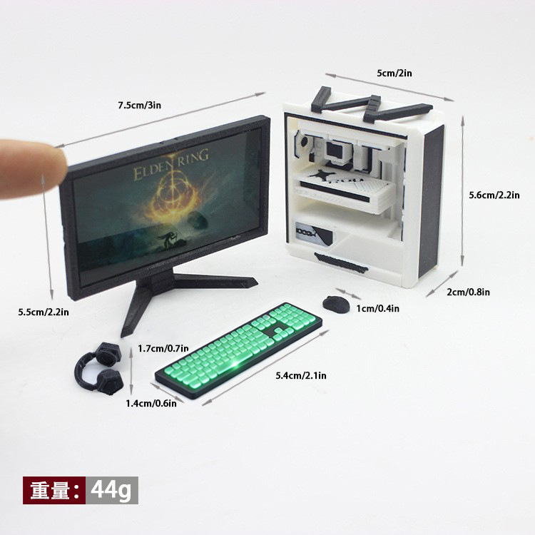 1:12 인형의 집 장면 장식품, 미니어처 가구, 미니 컴퓨터 호스트, 미니어처 e-스포츠 게임 테이블 및 의자, 헤드폰
