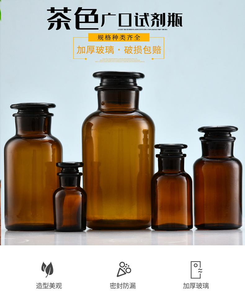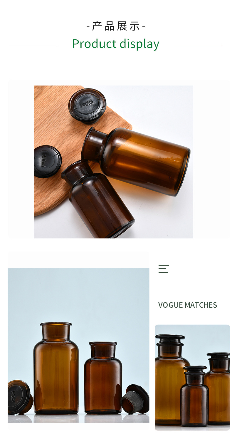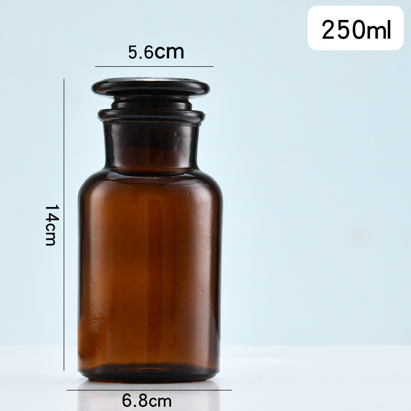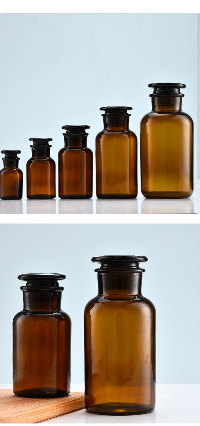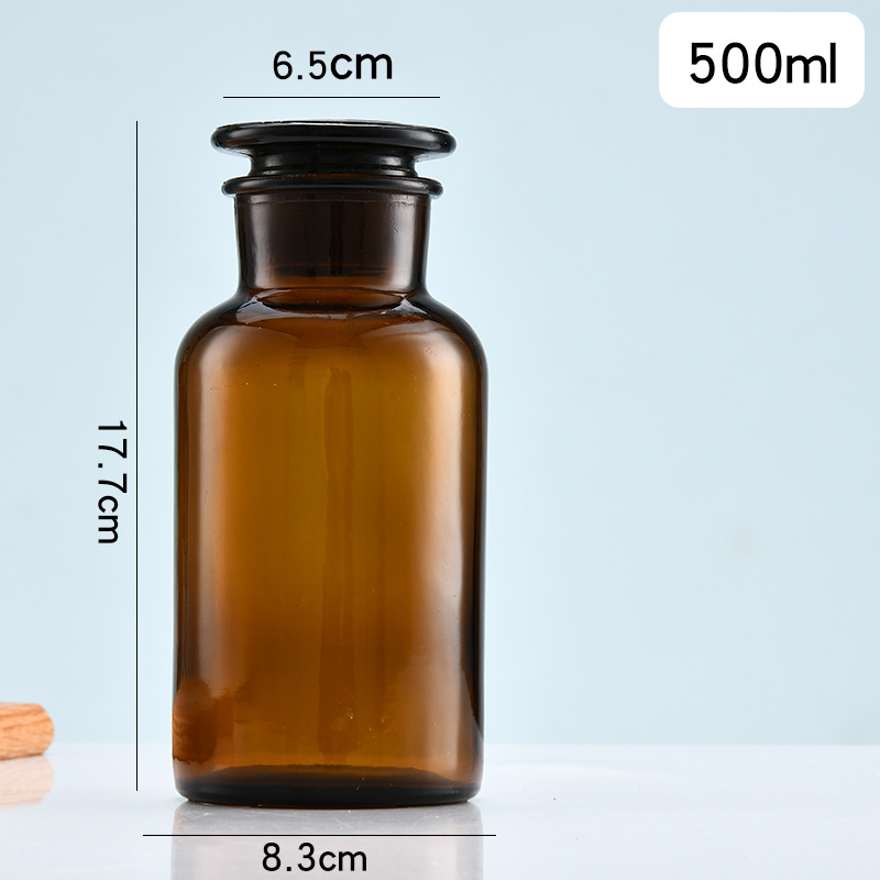 500ml 다크 브라운 넓은 입 시약 병 두꺼운 유리 밀봉 병 실험실 알코올 병 어두운 유리 병