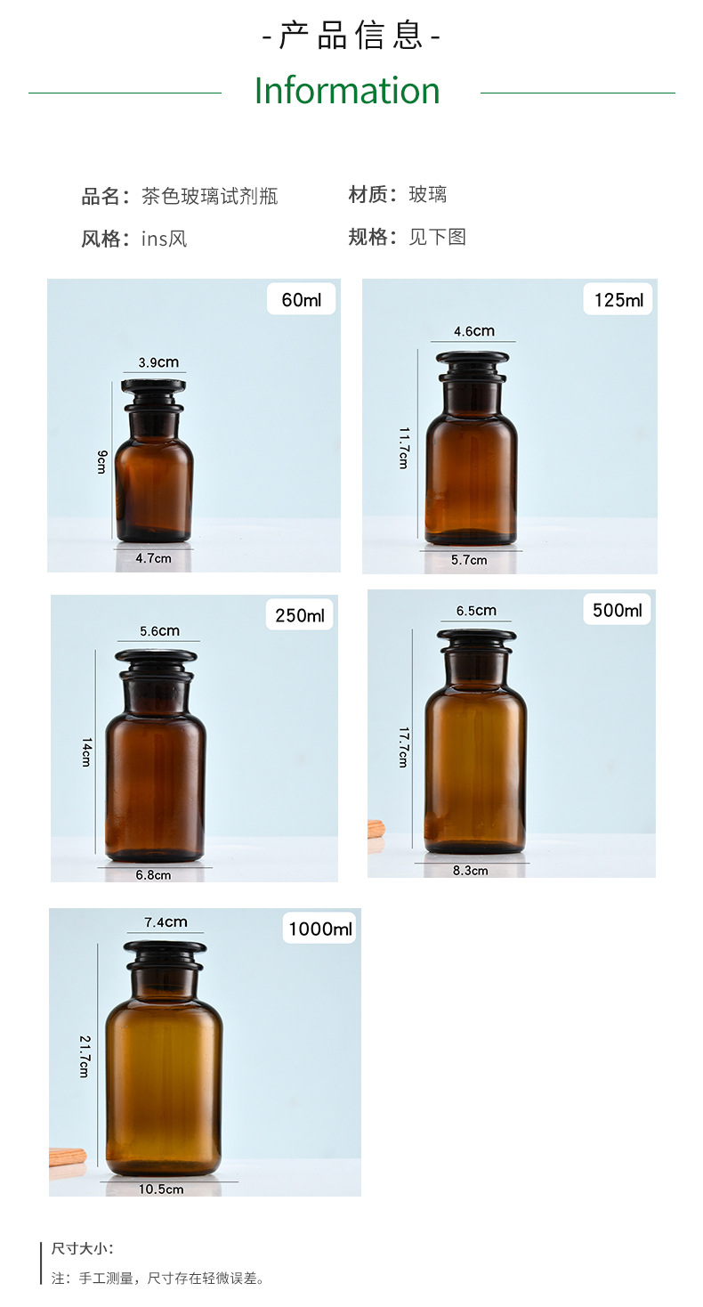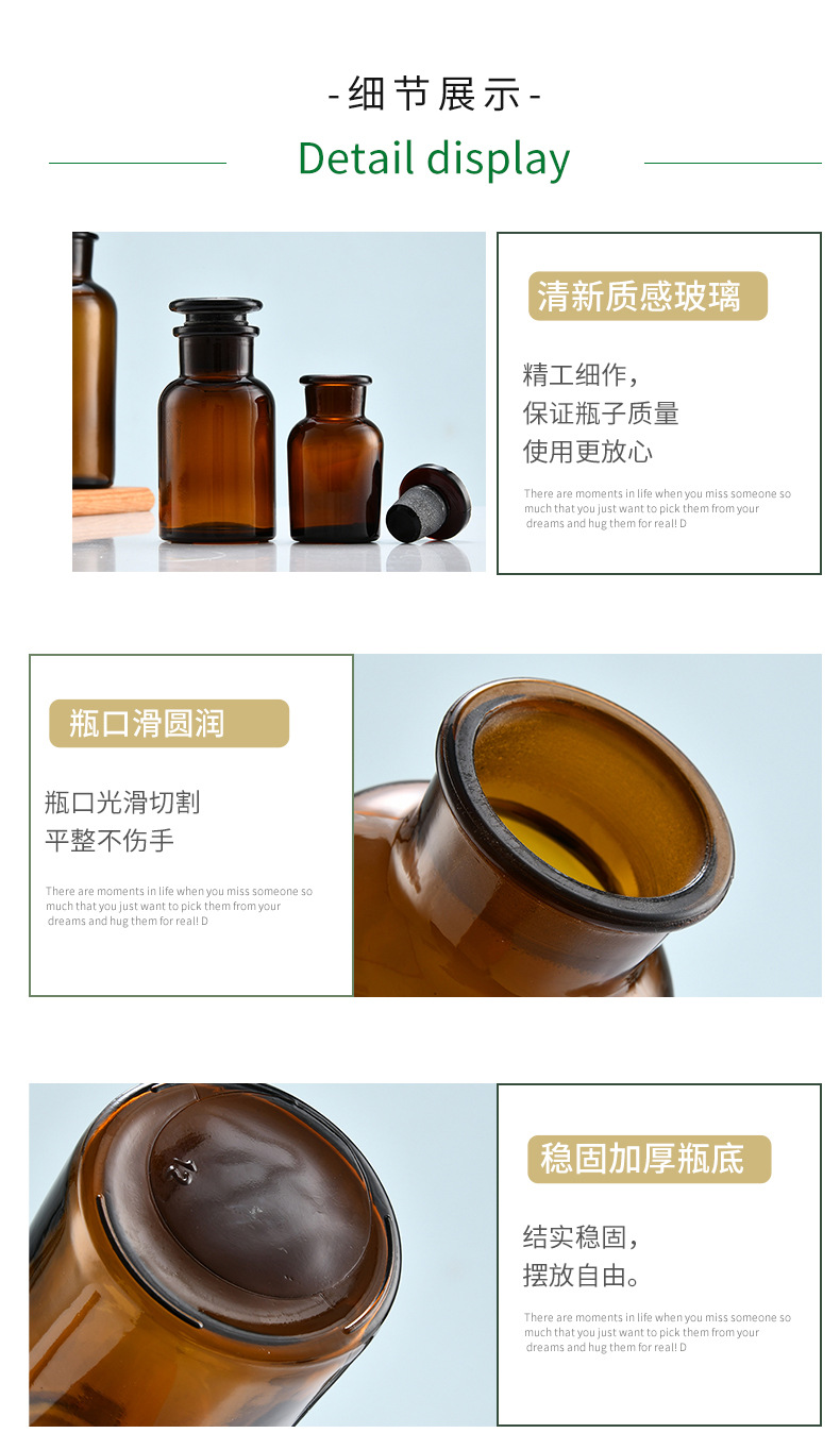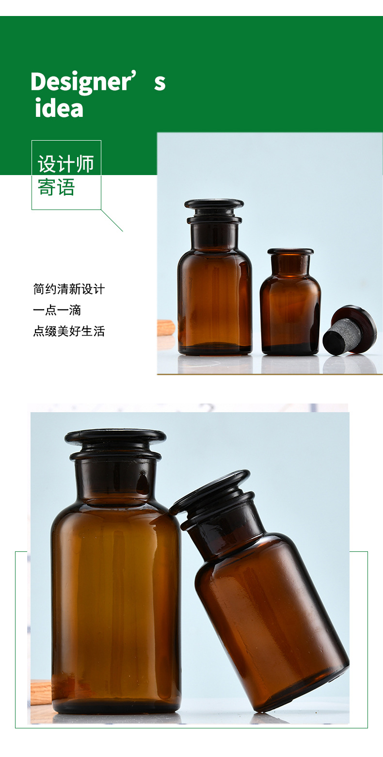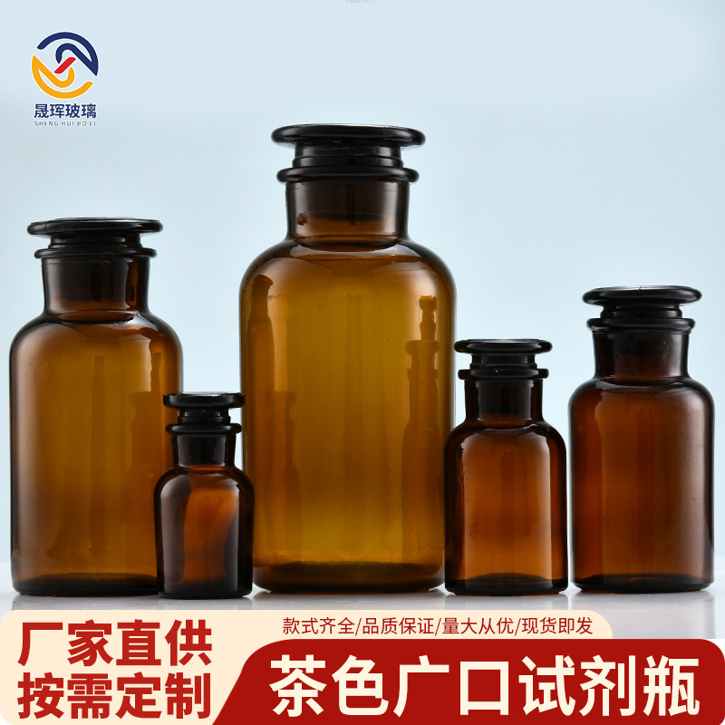 500ml 다크 브라운 넓은 입 시약 병 두꺼운 유리 밀봉 병 실험실 알코올 병 어두운 유리 병