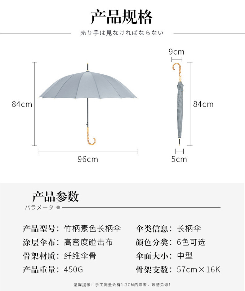 대나무 손잡이 작은 신선한 16 뼈 긴 손잡이 우산 예술 일반 맑은 우산 광고 우산 인쇄 로고 머리카락 세대