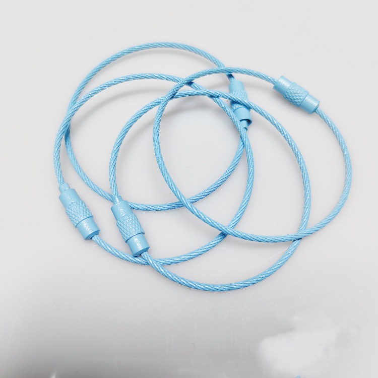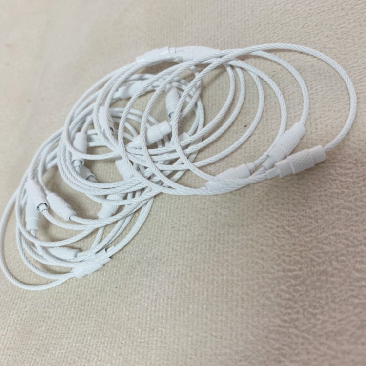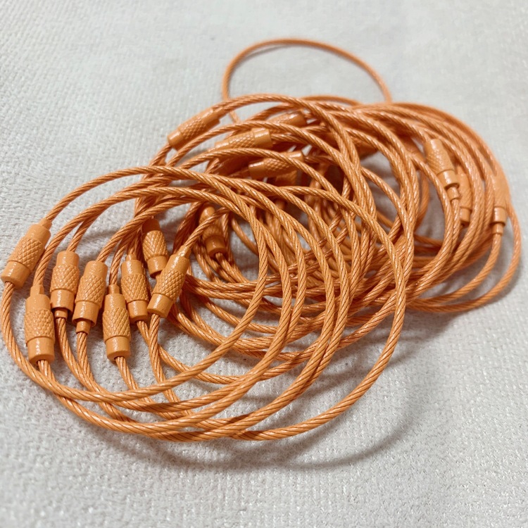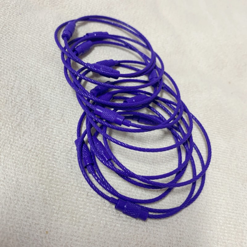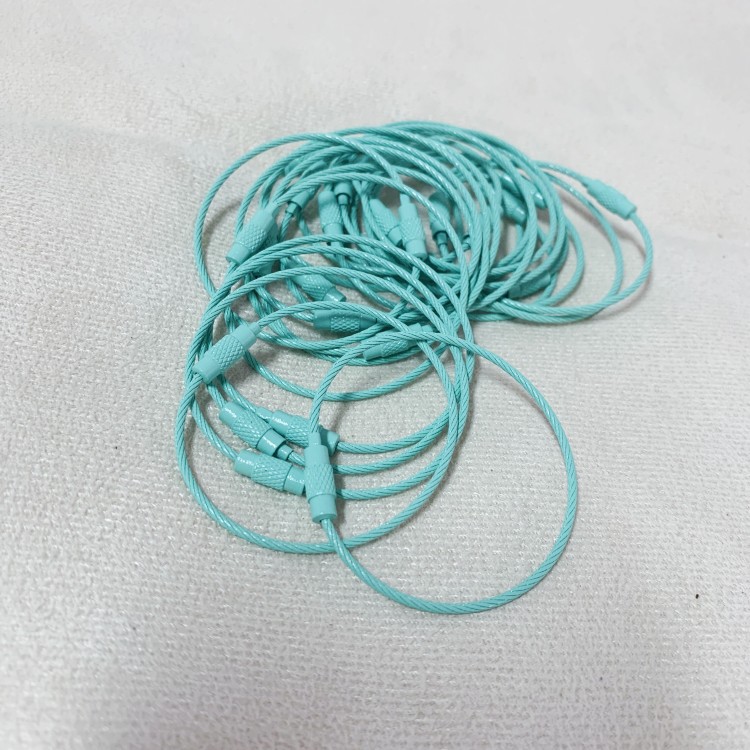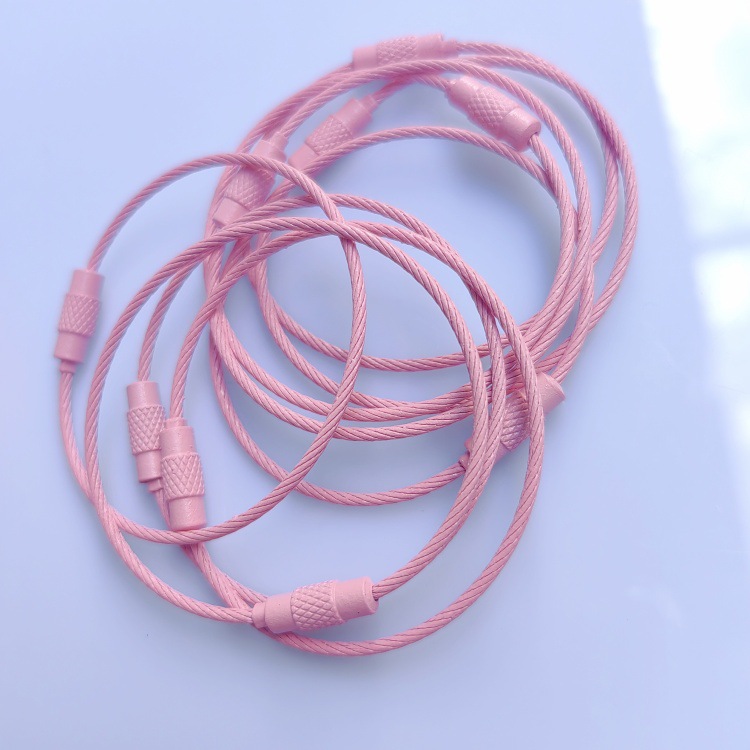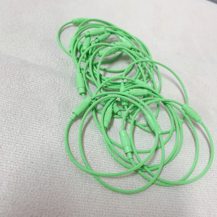 공장 재고 컬러 스틸 와이어 로프 키 체인 페인트 링 링 아연 도금 강철 와이어 키 링 컬러 태그 로프스토어 가기