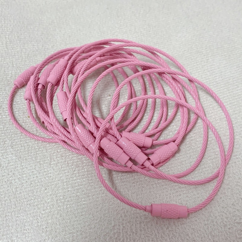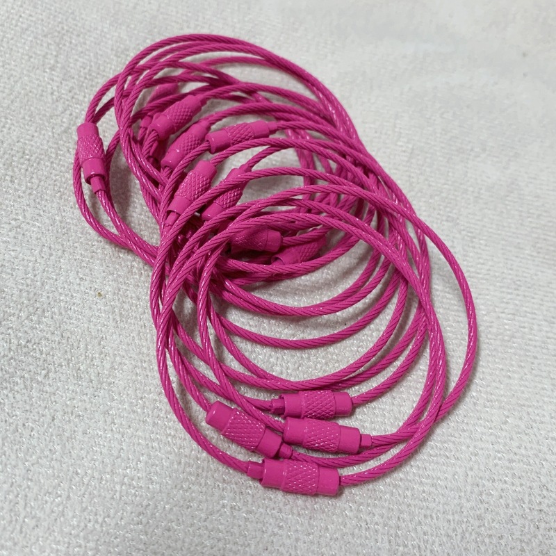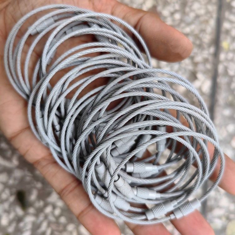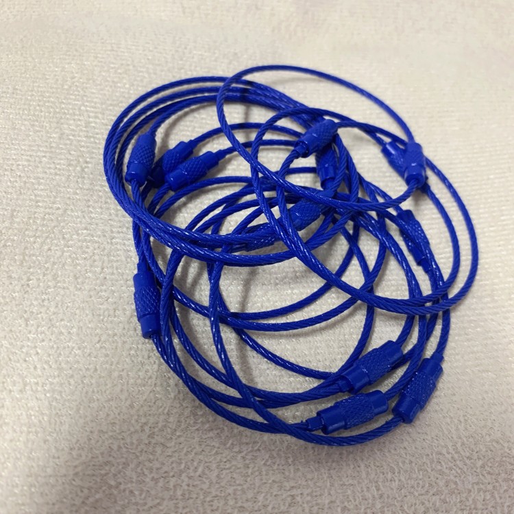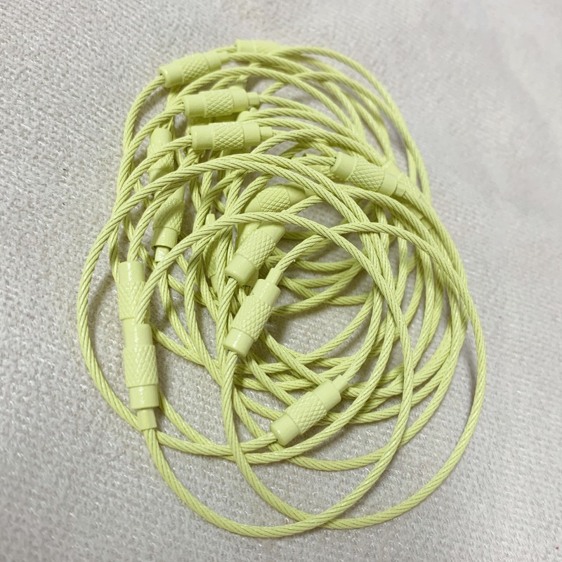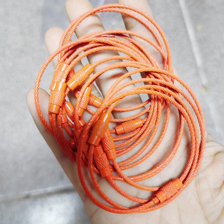공장 재고 컬러 스틸 와이어 로프 키 체인 페인트 링 링 아연 도금 강철 와이어 키 링 컬러 태그 로프스토어 가기