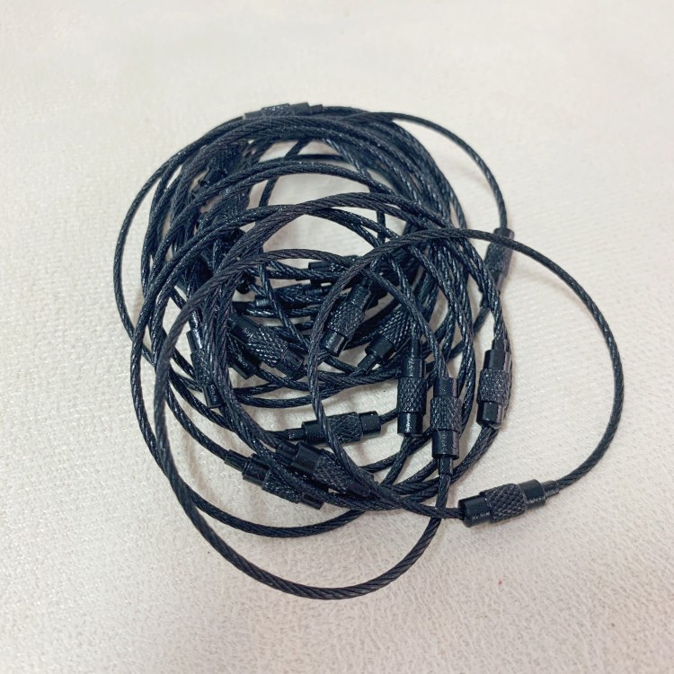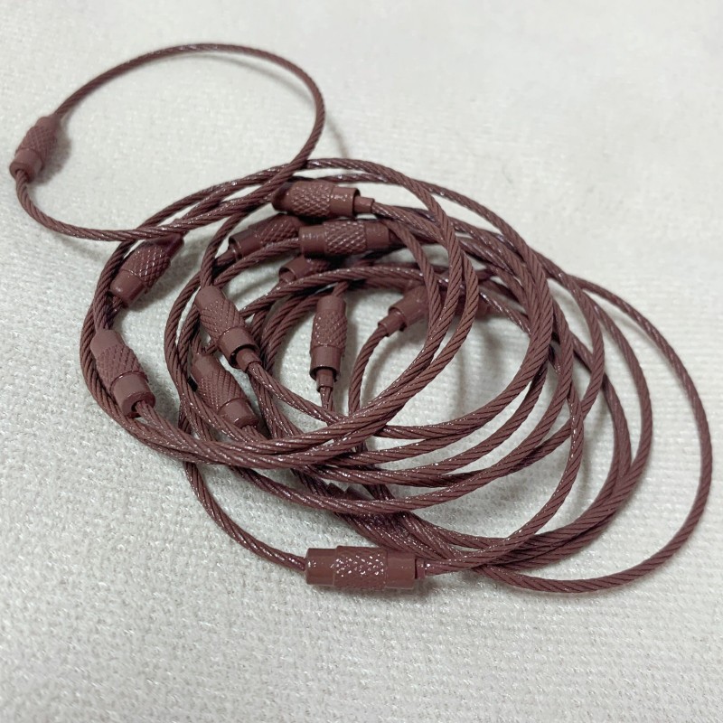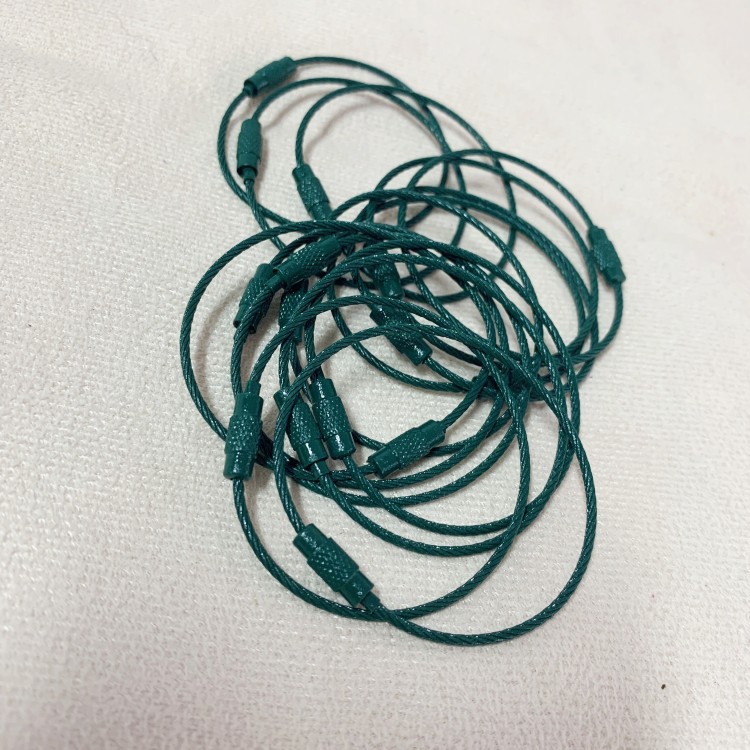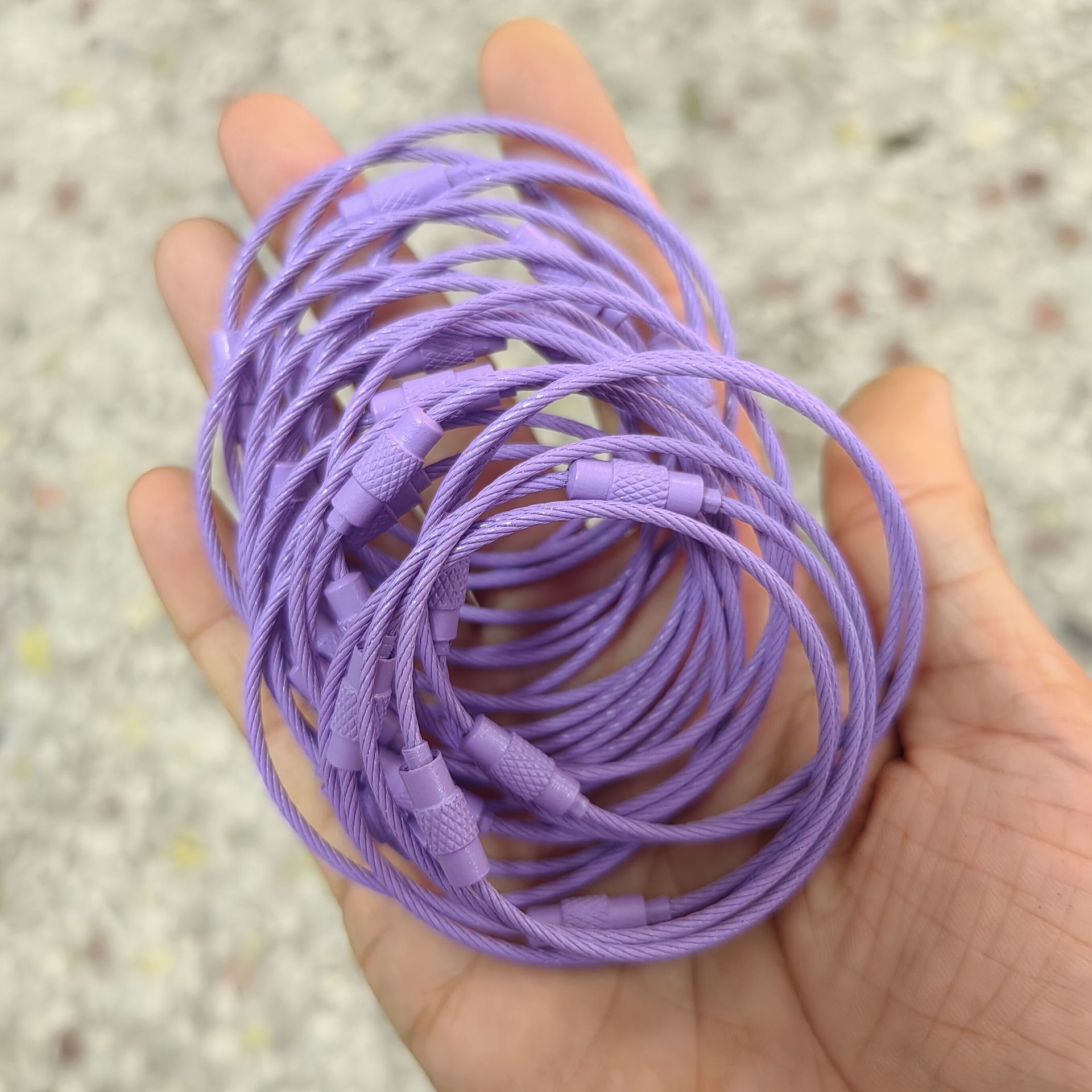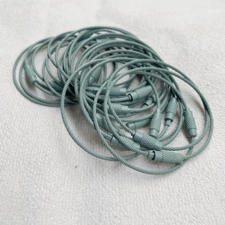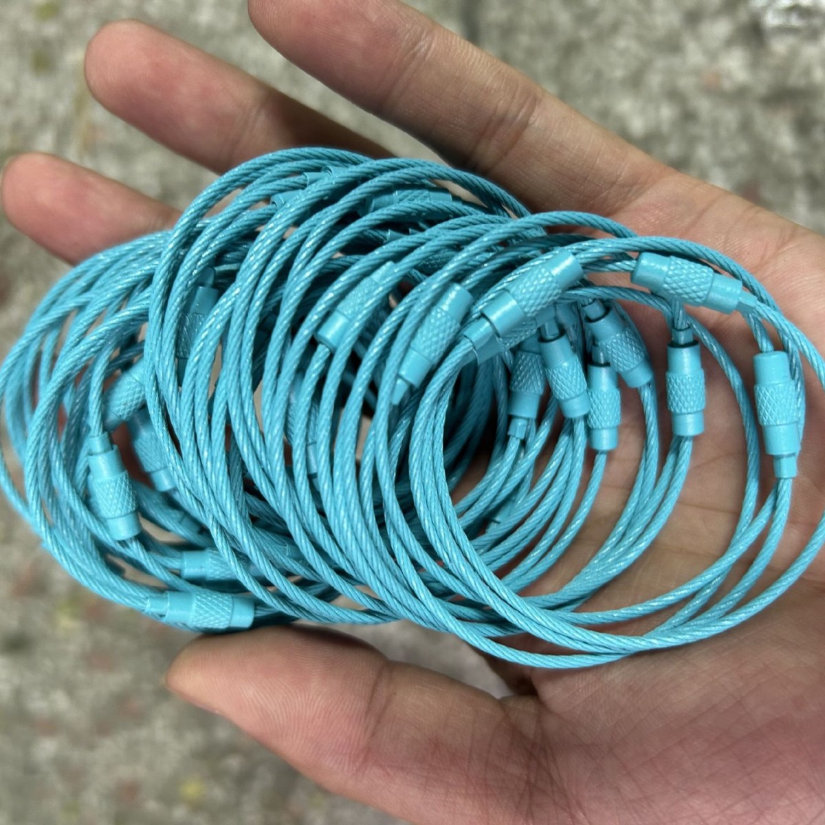 공장 재고 컬러 스틸 와이어 로프 키 체인 페인트 링 링 아연 도금 강철 와이어 키 링 컬러 태그 로프