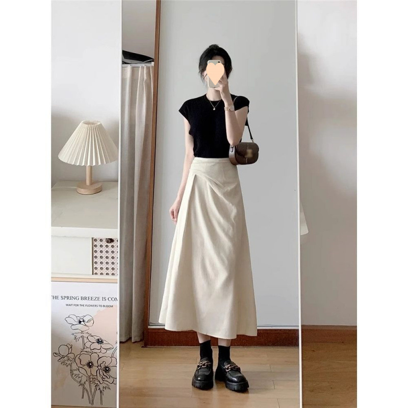 배 모양의 높은 허리 치마 여자 여름 2025 새로운 도착 슬림 피트 중간 길이 치마스토어 가기