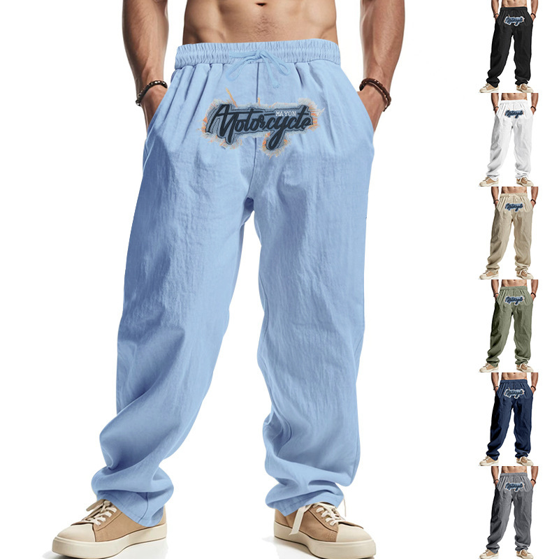 아마존 크로스 보더 남자 리넨 느슨한 힙합 하이 스트리트 트렌디 세척 자수 조깅 캐주얼 스포츠 바지