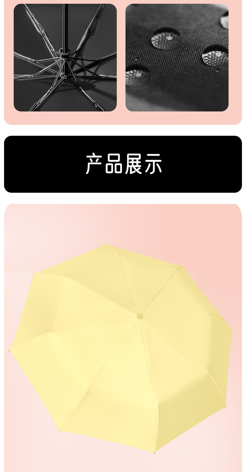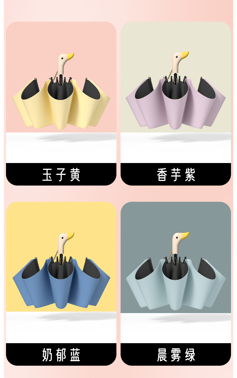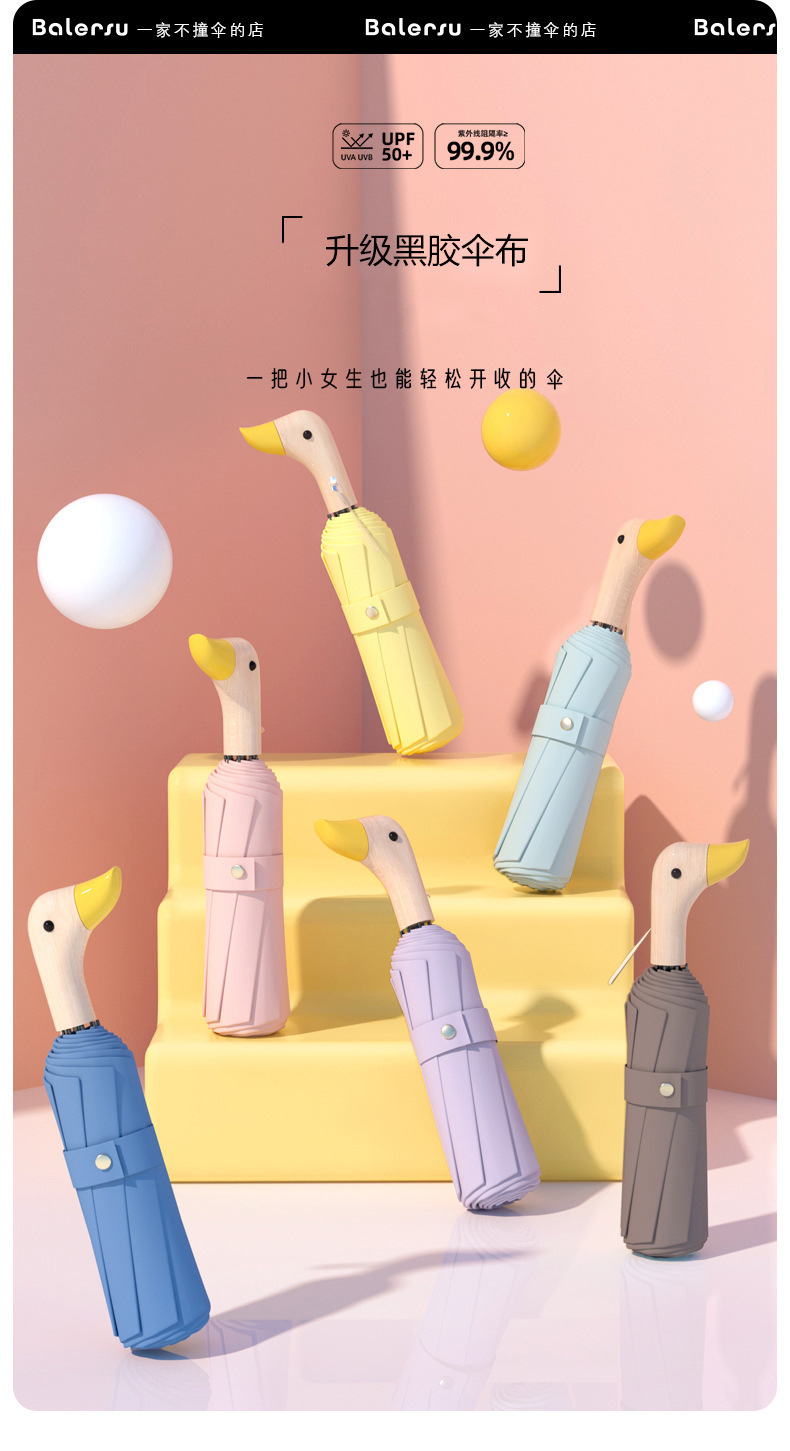 8-뼈 두꺼운 검은 고무 오리 머리 우산 여성의 태양 보호 및 자외선 보호 및 비 보호 이중 사용 태양 우산스토어 가기
