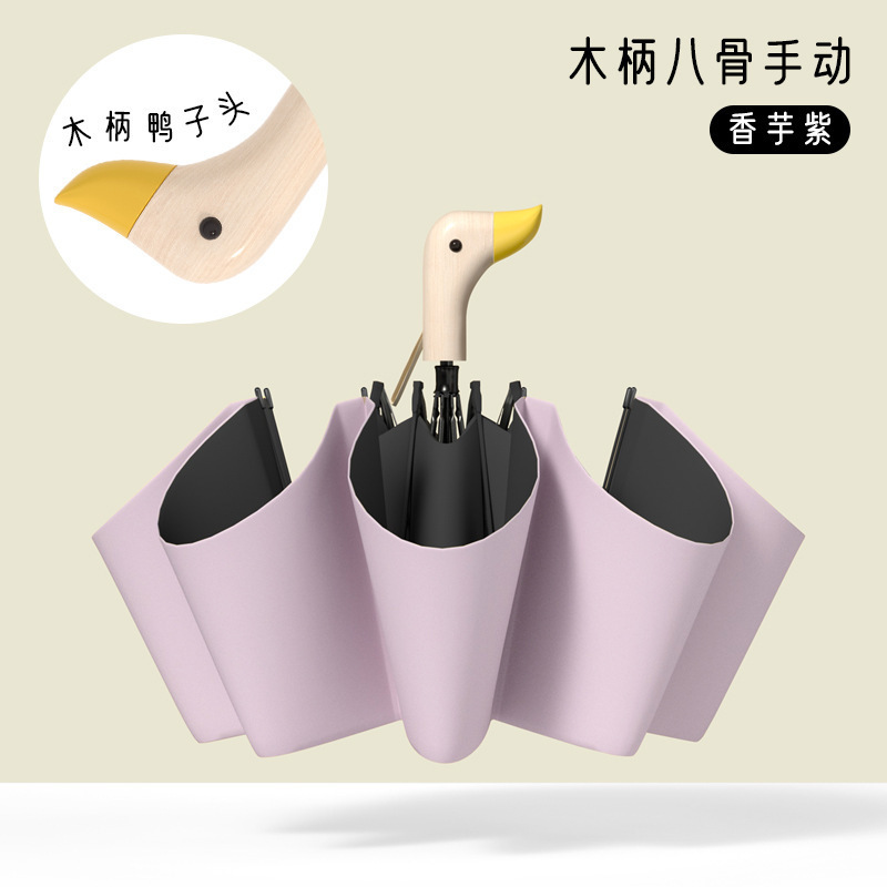 8-뼈 두꺼운 검은 고무 오리 머리 우산 여성의 태양 보호 및 자외선 보호 및 비 보호 이중 사용 태양 우산
