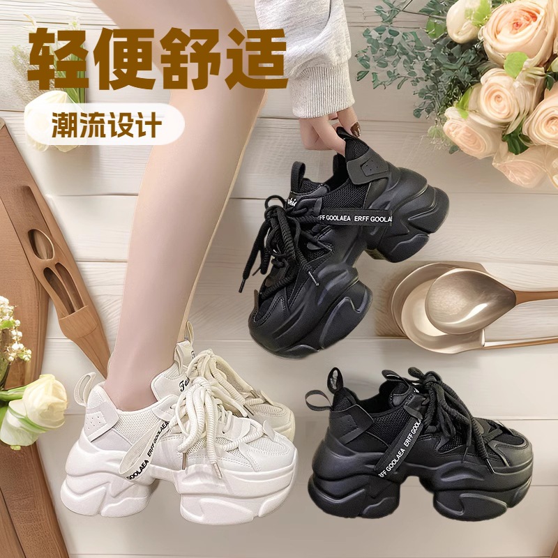 두꺼운 밑창 튀긴 거리 캐주얼 아빠 신발 여성 가을 운동화 2025 시즌 새로운 슬리밍 증가 스포츠 흰색 신발 여성의 조수스토어 가기