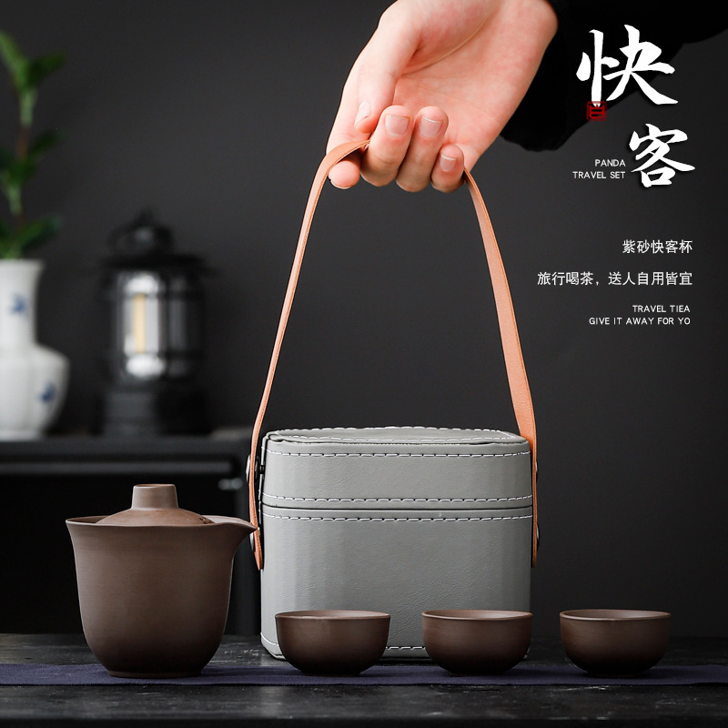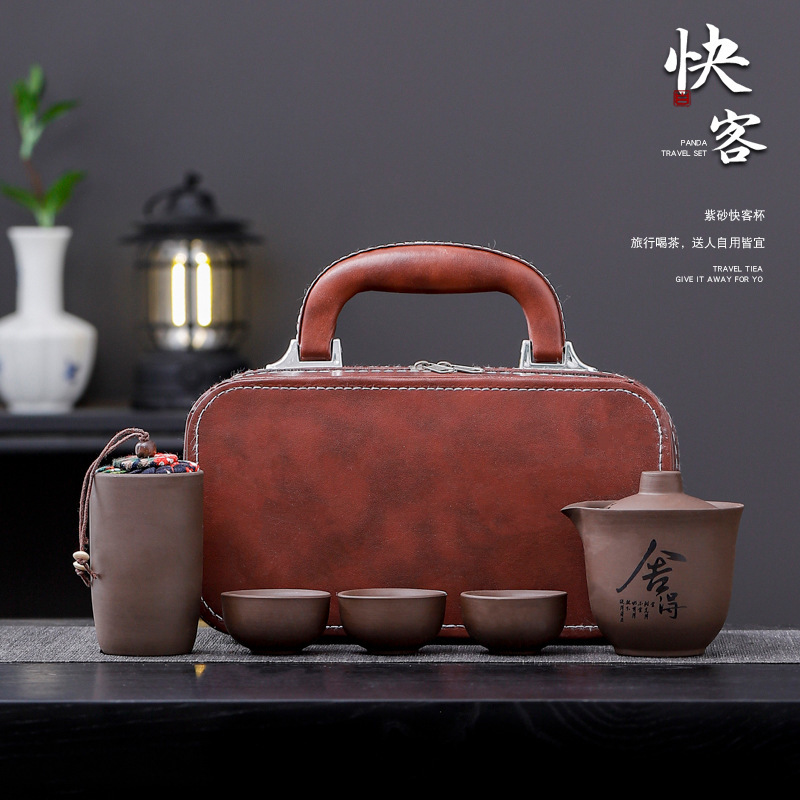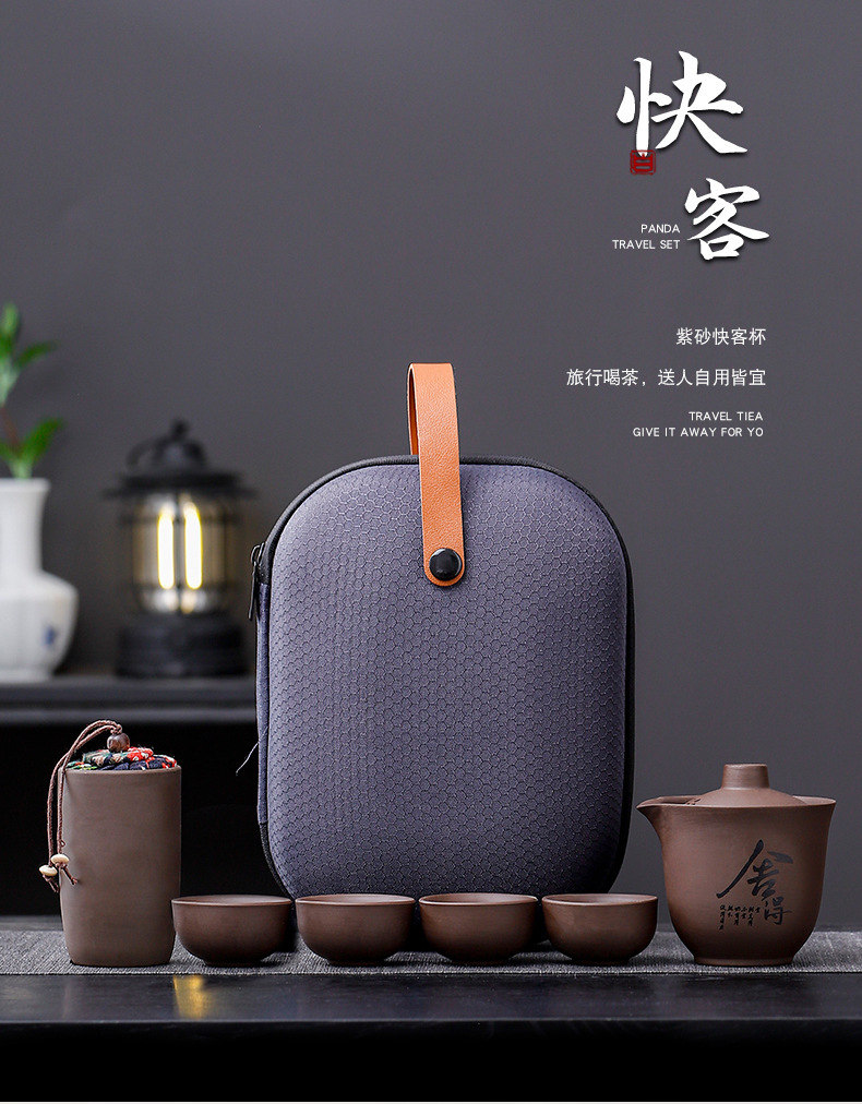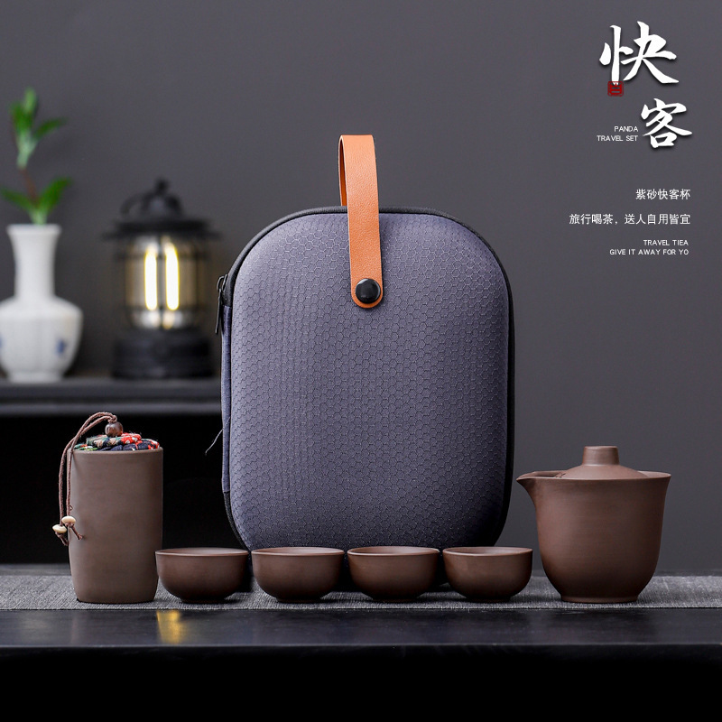 보라색 모래 여행 쿵푸 차 세트 휴대용 세트 익스프레스 컵 세트 차 캔 티 컵 홈 야외 선물 배달