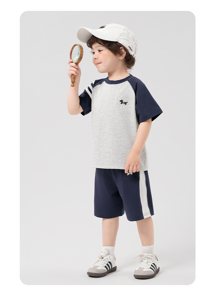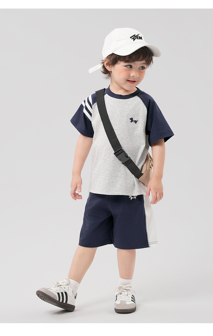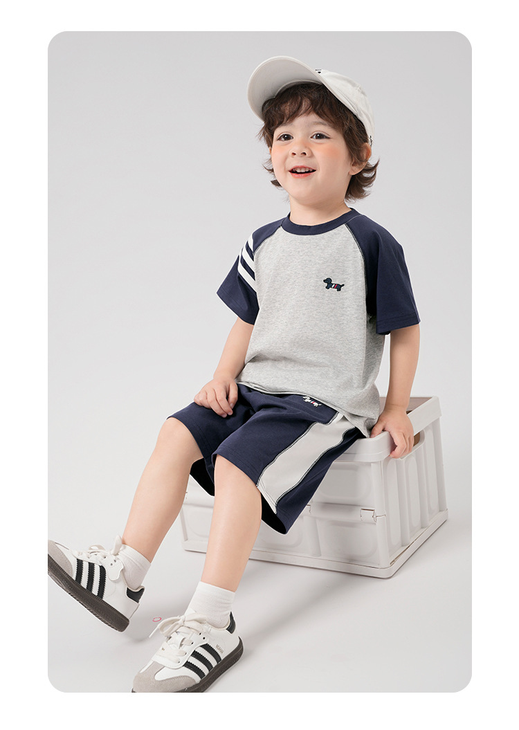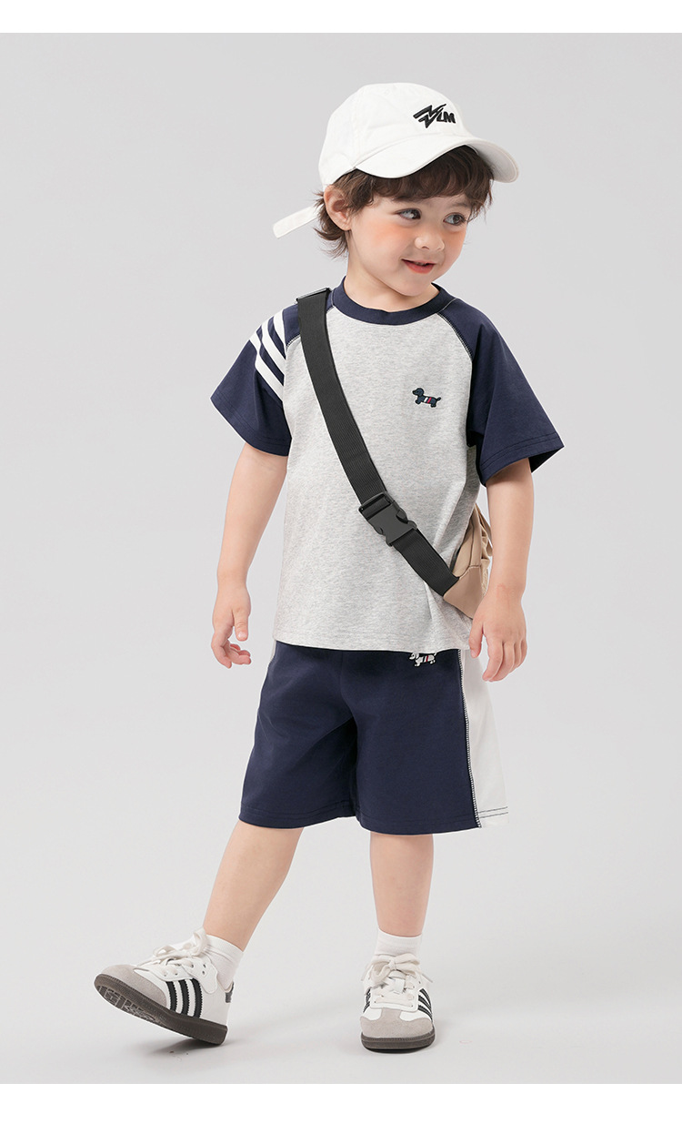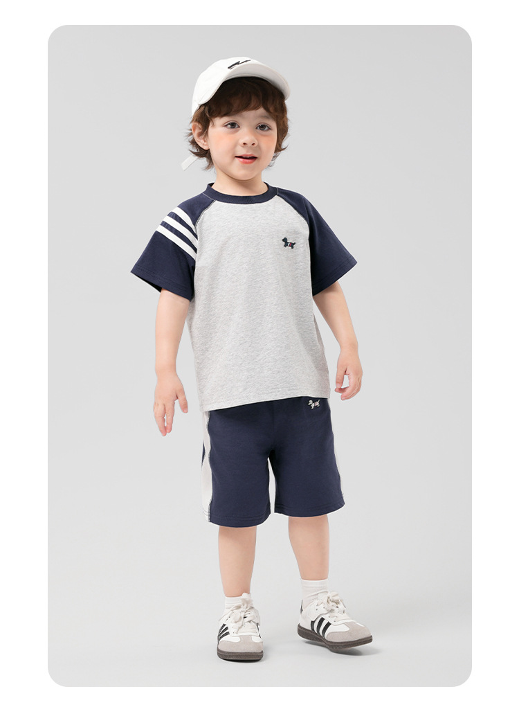 남학생 항균 아카데미 스타일 스포츠 세트 여름착용 아동복 어린이 아기 여름 반팔 티셔츠 반바지 투피스 세트스토어 가기