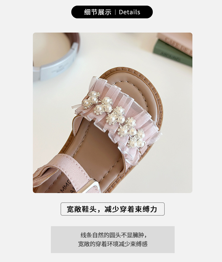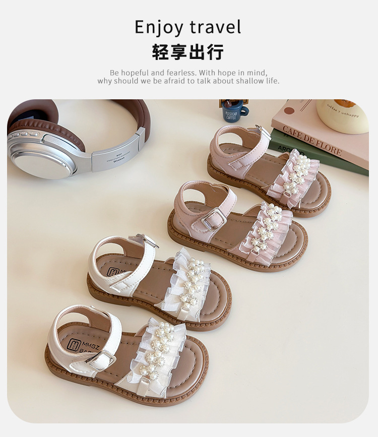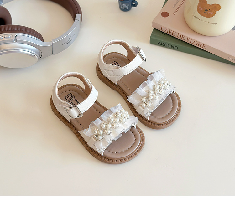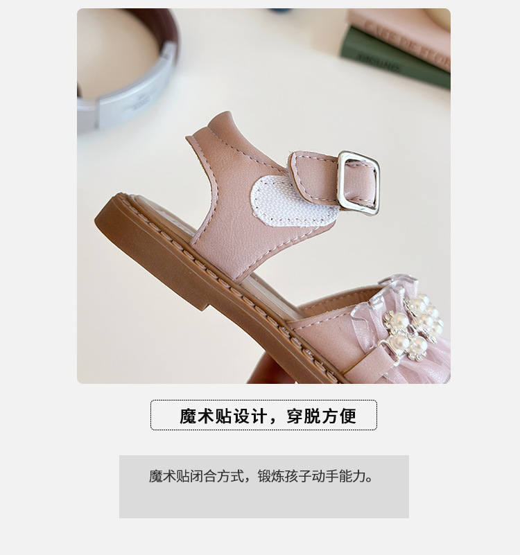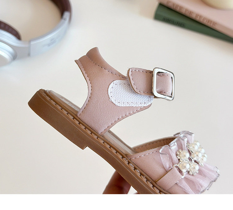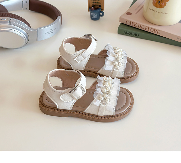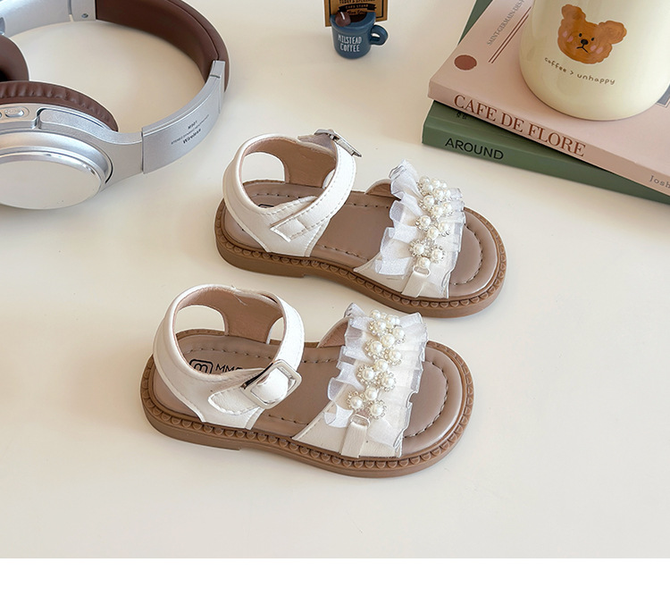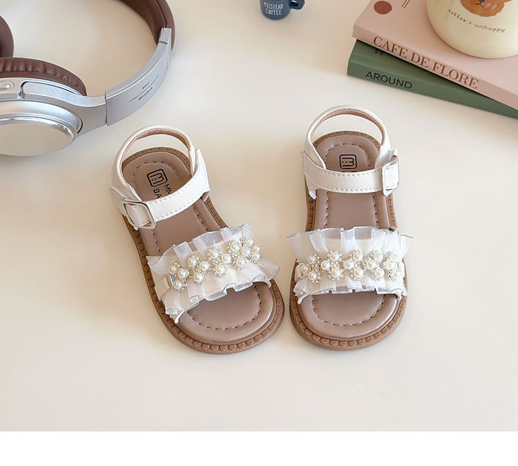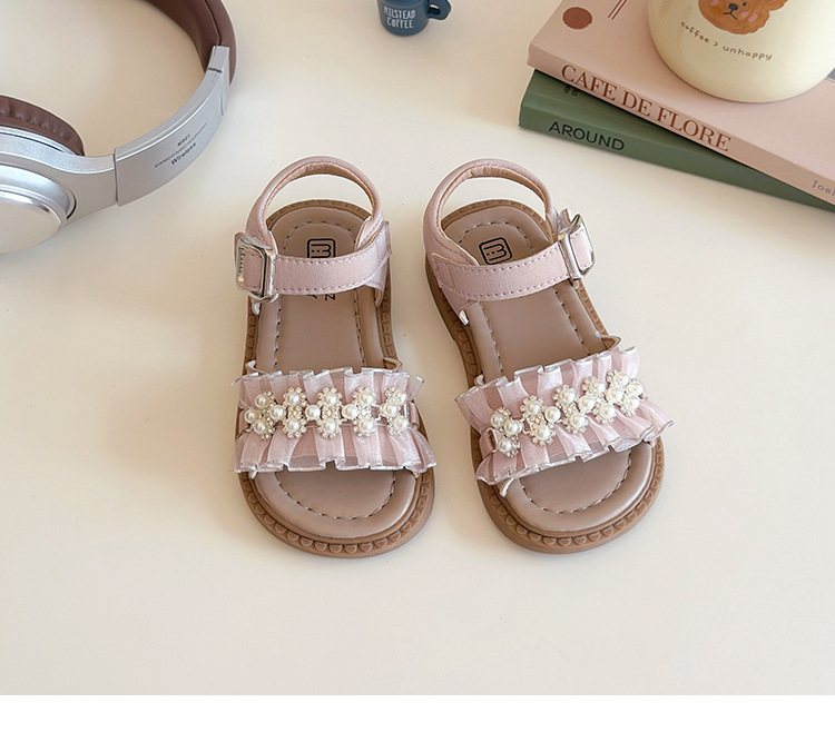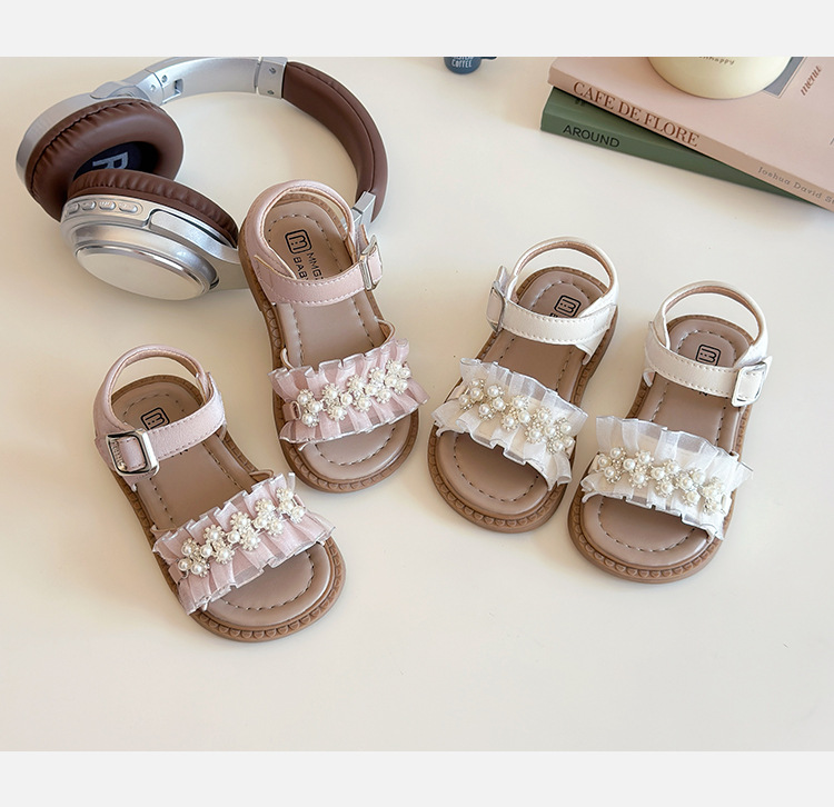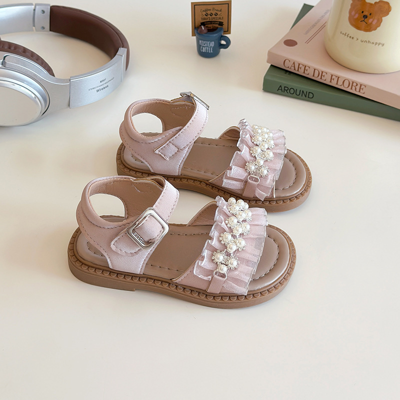 어린이 오픈 발가락 샌들 2025 여름 새로운 도착 여성 중소 어린이 패션 비치 슈즈 걸스 펄 샌들