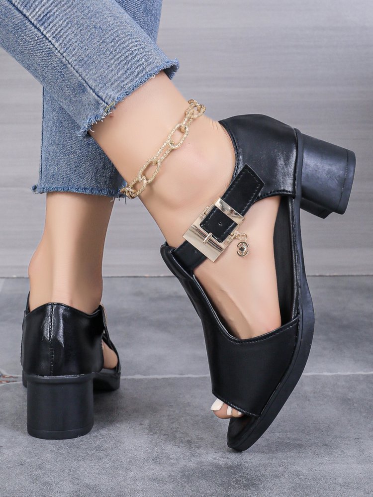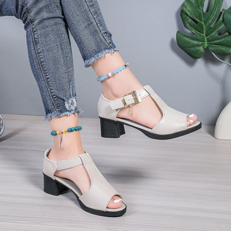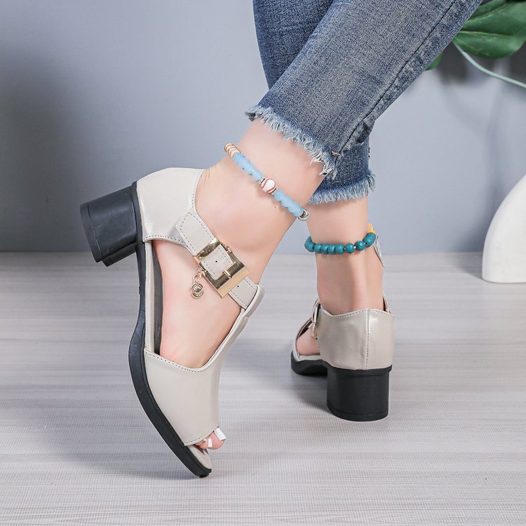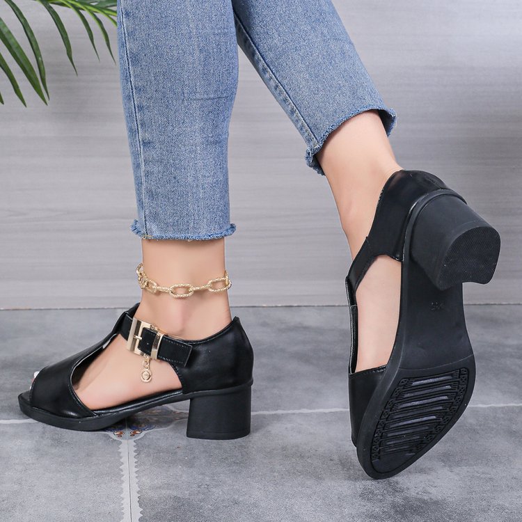 여성 힐스 샌들 여자 2025 미드 힐 할로우 버클 로마 샌들, 여성용 힐스 샌들