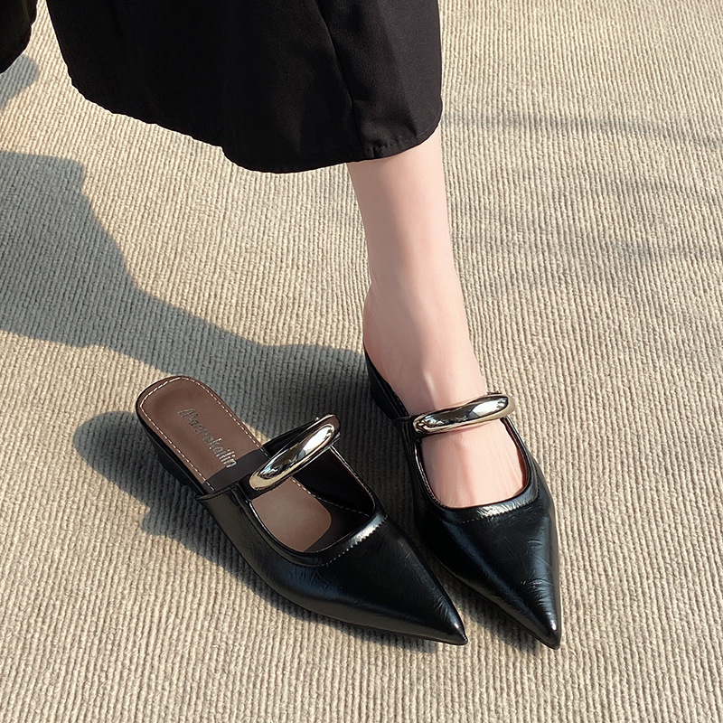 2025 년 여름 새로운 도착 프랑스 스타일 반 슬리퍼 여성 한국 스타일 의상 우아한 금속 버클 여성 유행 여성 신발스토어 가기
