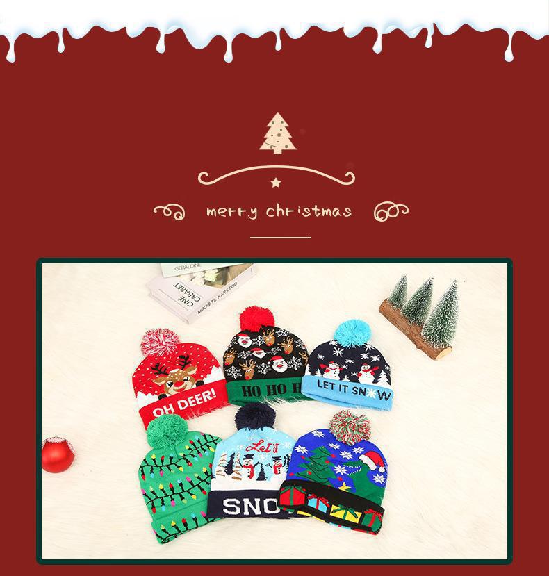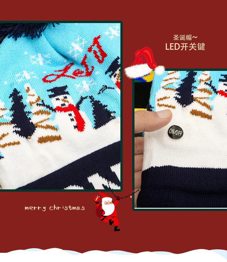 국경 간 크리스마스 장식 플랜지 공 니트 모자 LED 조명 산타 발광 모자 성인 어린이 모자스토어 가기