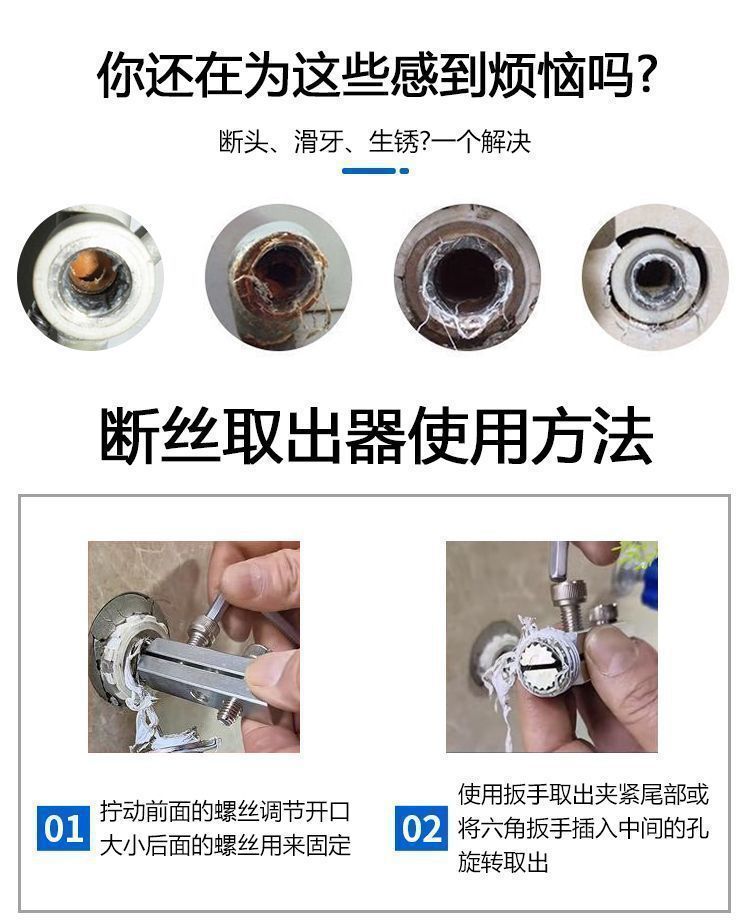 새로운 공구 수도꼭지 앵글 밸브 깨진 와이어 추출 장치 다기능 탭 리버스 와이어 수도관 깨진 파이프 깨진 헤드 나사