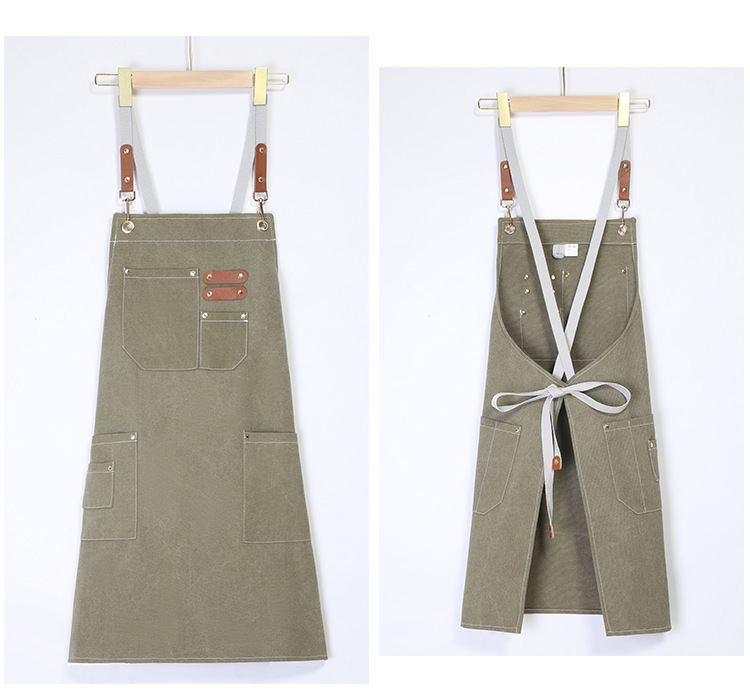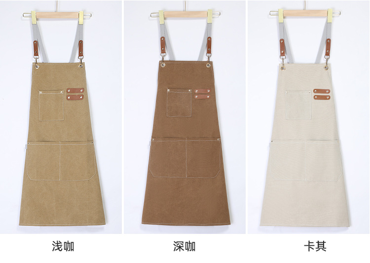 캔버스 앞치마 맞춤형 로고 케이터링 베이킹 커피 밀크티 숍 한국식 앞치마 맞춤형 내마모성 두꺼운 맞춤형 앞치마