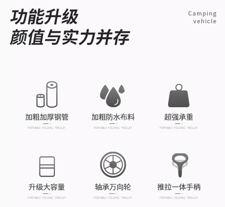 캠핑카 야외 접이식 트롤리 대형 캠프 자동차 피크닉 자동차 트레일러 캠핑 핸드 트롤리 스톨 트롤리