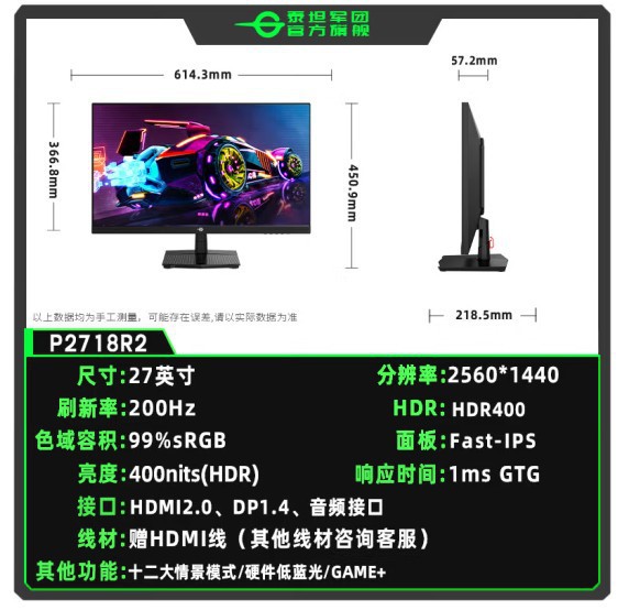 타이탄 군단 P2718R2 27 "2K/200Hz 전기 경쟁 닭 먹는 LCD 화면 빠른 화면스토어 가기