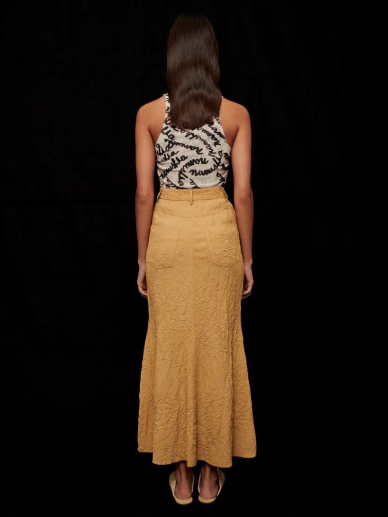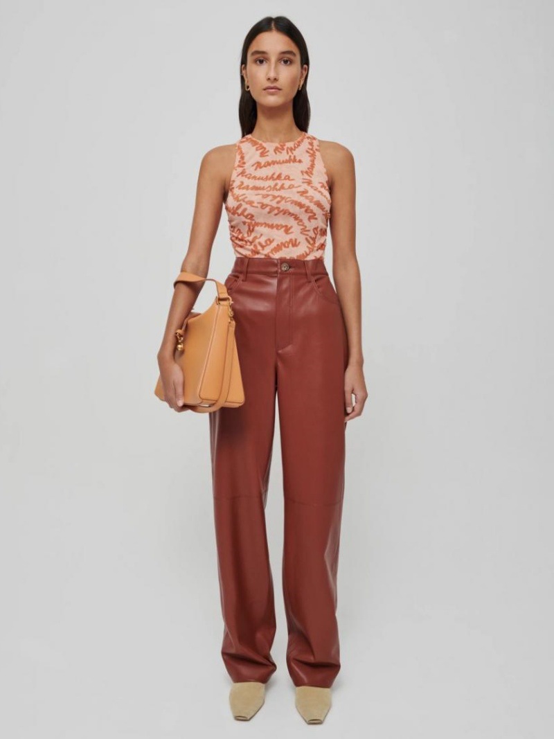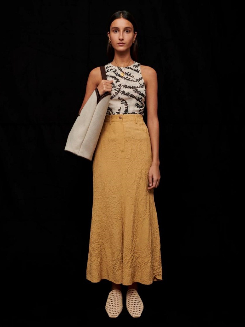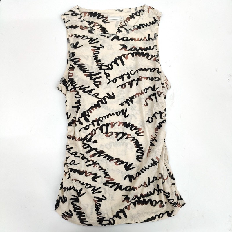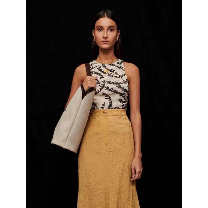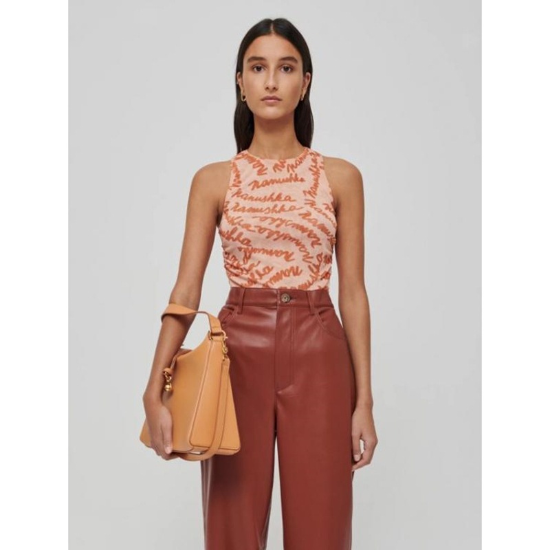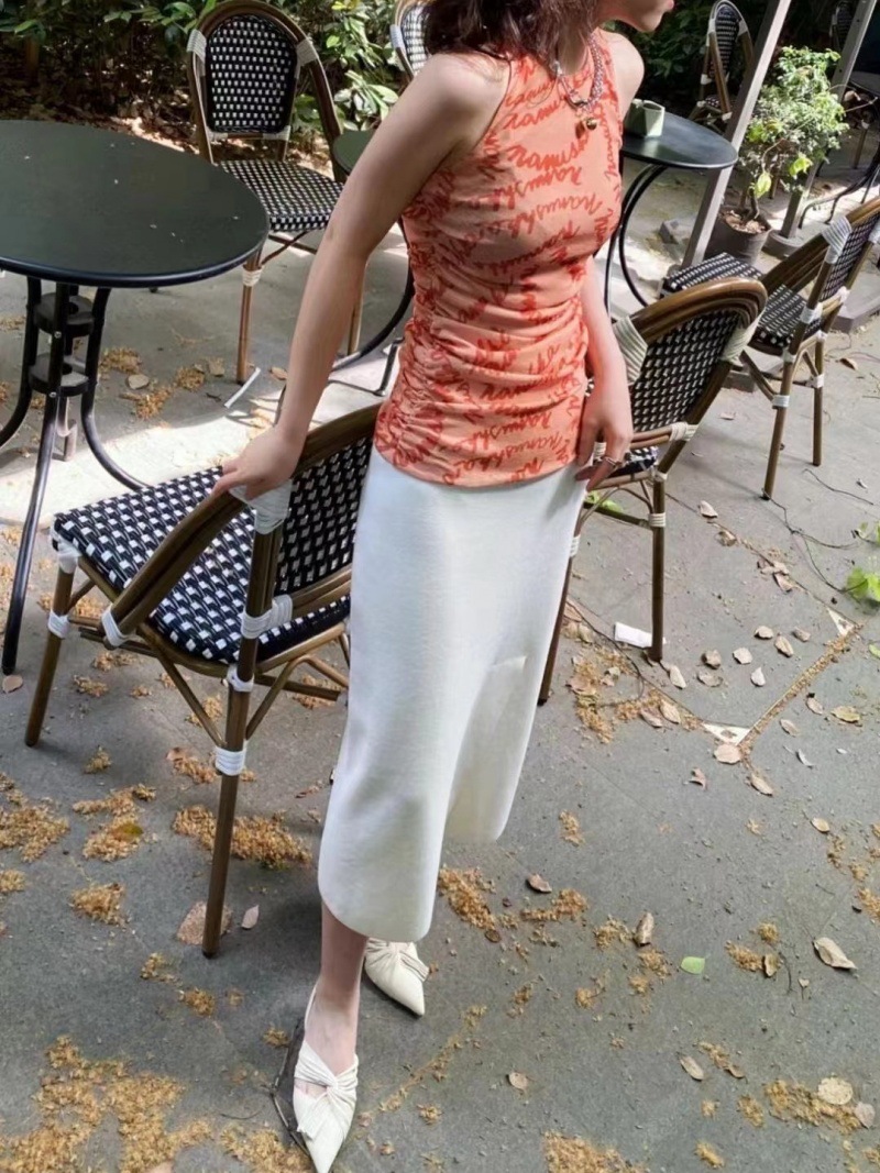Longmei 2025 봄과 여름 새로운 NANU 스타일 편지 인쇄 된 여성용 주름 허리 민소매 슬림 조끼 탑스토어 가기