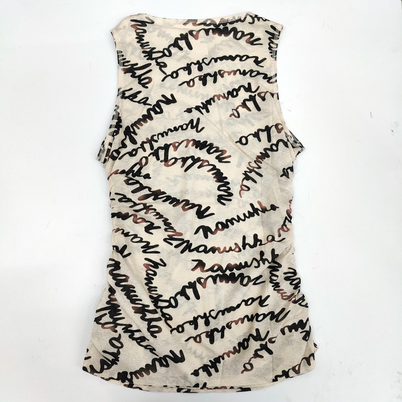 Longmei 2025 봄과 여름 새로운 NANU 스타일 편지 인쇄 된 여성용 주름 허리 민소매 슬림 조끼 탑