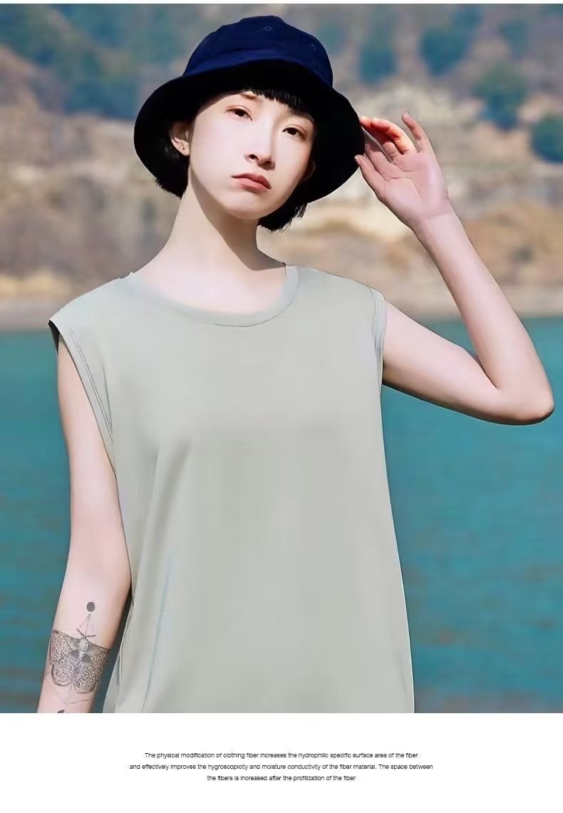 스포츠 조끼 남자 아이스 실크 빠른 건조 메쉬 와이드 숄더베이스 피트니스 탑 여름 얇은 남성 민소매 티셔츠 트렌디스토어 가기