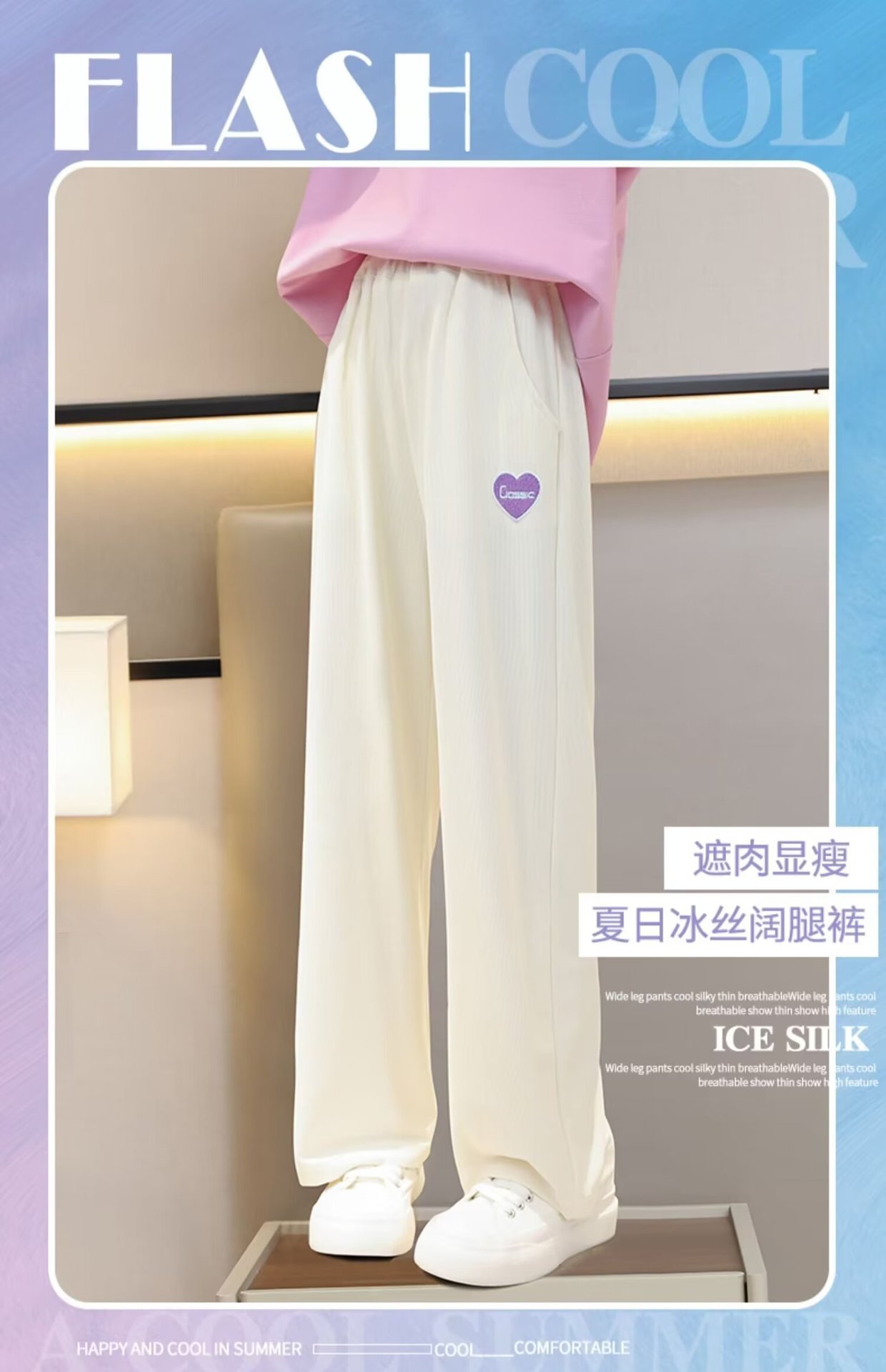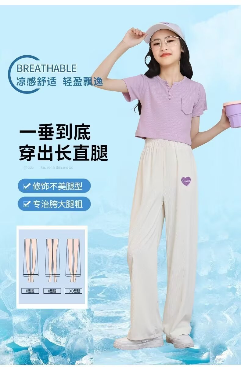 소녀 여름 바지 얇은 소녀 아이스 실크 넓은 다리 바지 여름 어린이 2025 새로운 소녀 안티 모기 바지스토어 가기