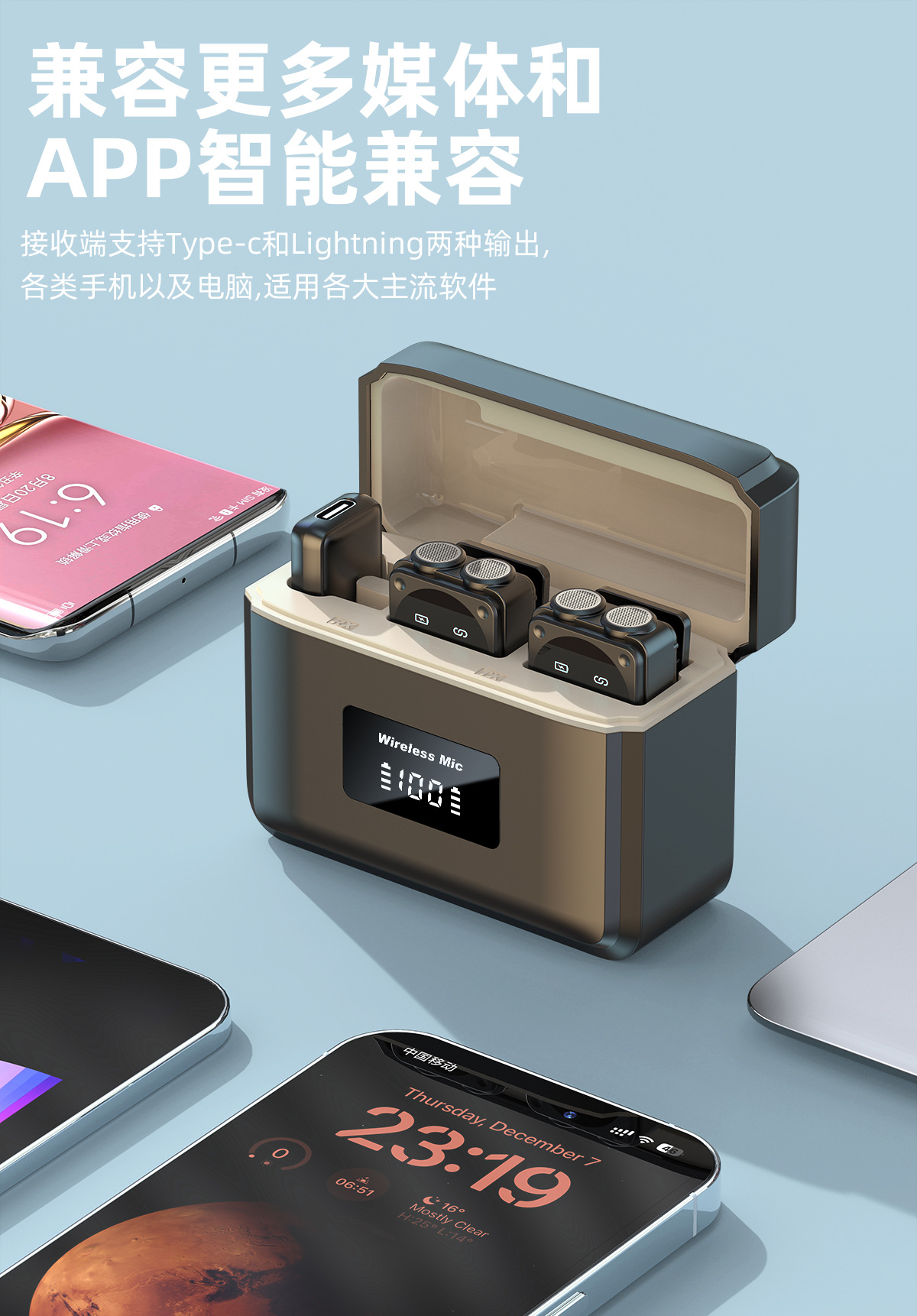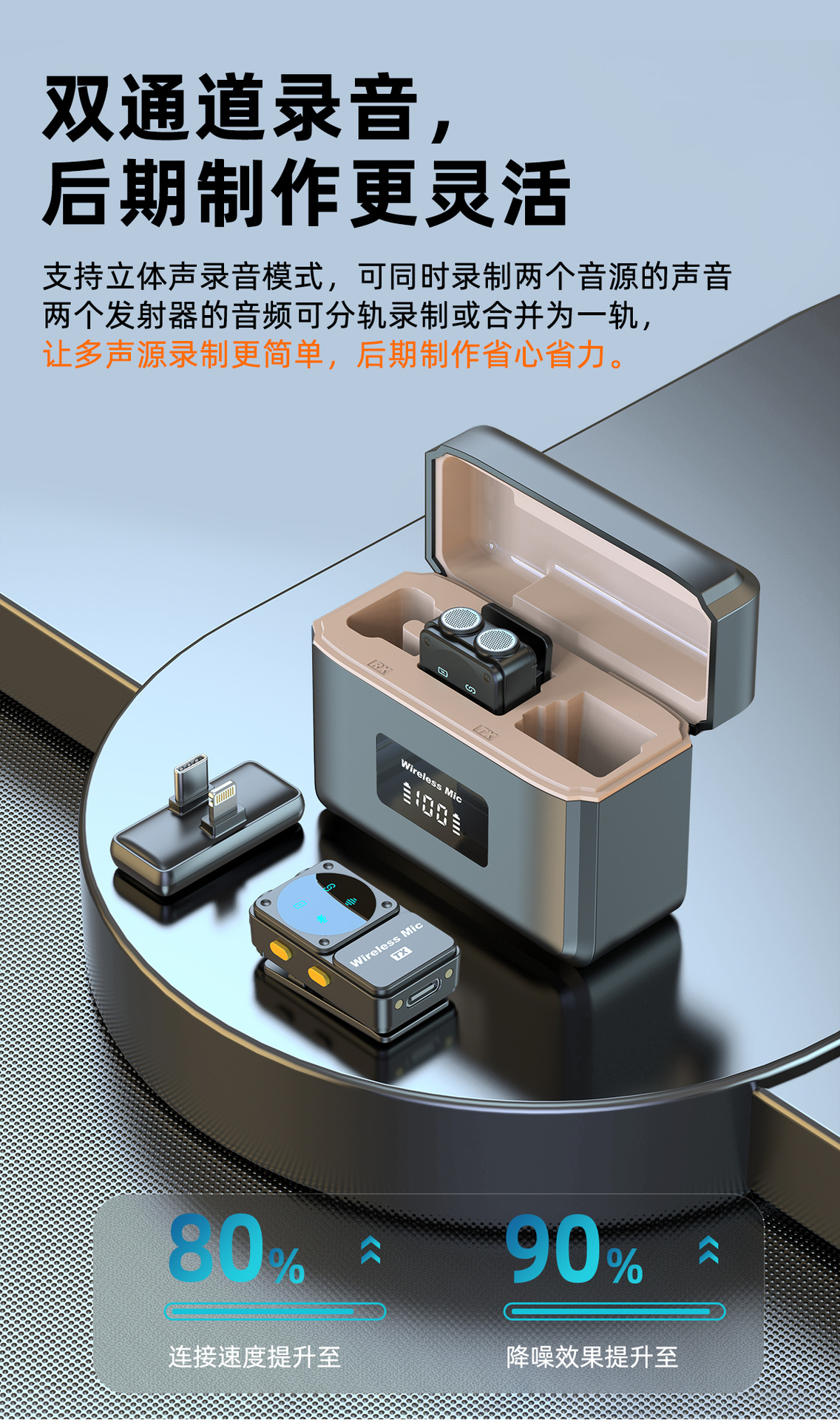 새로운 Q12U 듀얼 커넥터 무선 칼라 클립 마이크 지능형 소음 감소 야외 라디오 라이브 촬영 마이크스토어 가기